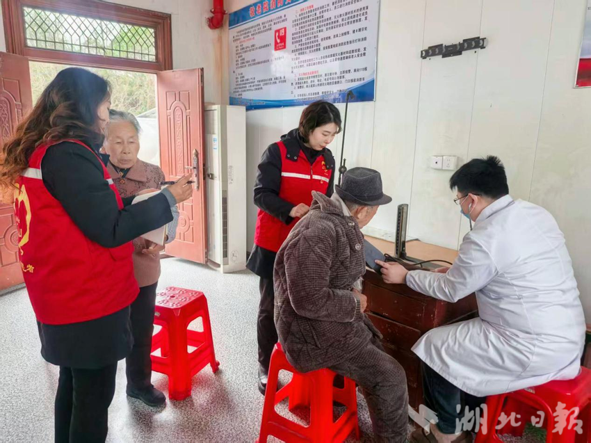 医疗志愿者耐心为老人们测量血压、检查身体,结合春季气候特点,讲解老年人常见疾病预防知识和养生技巧,针对每位老人的身体状况给出个性化建议,用专业服务为老人健康保驾护航。