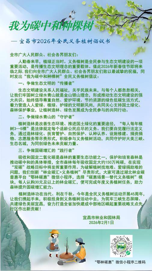 宜昌市2026年全民义务植树倡议书
