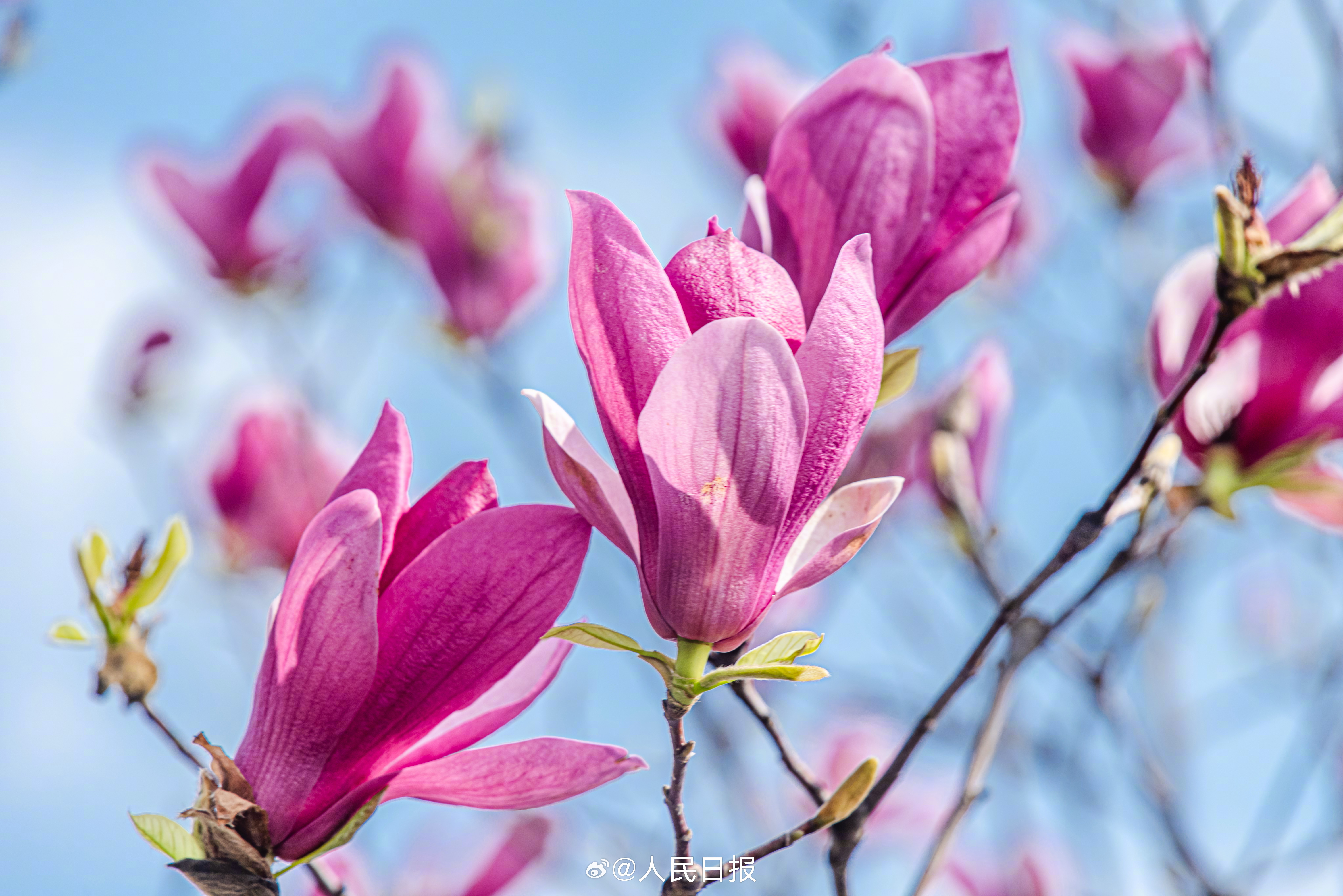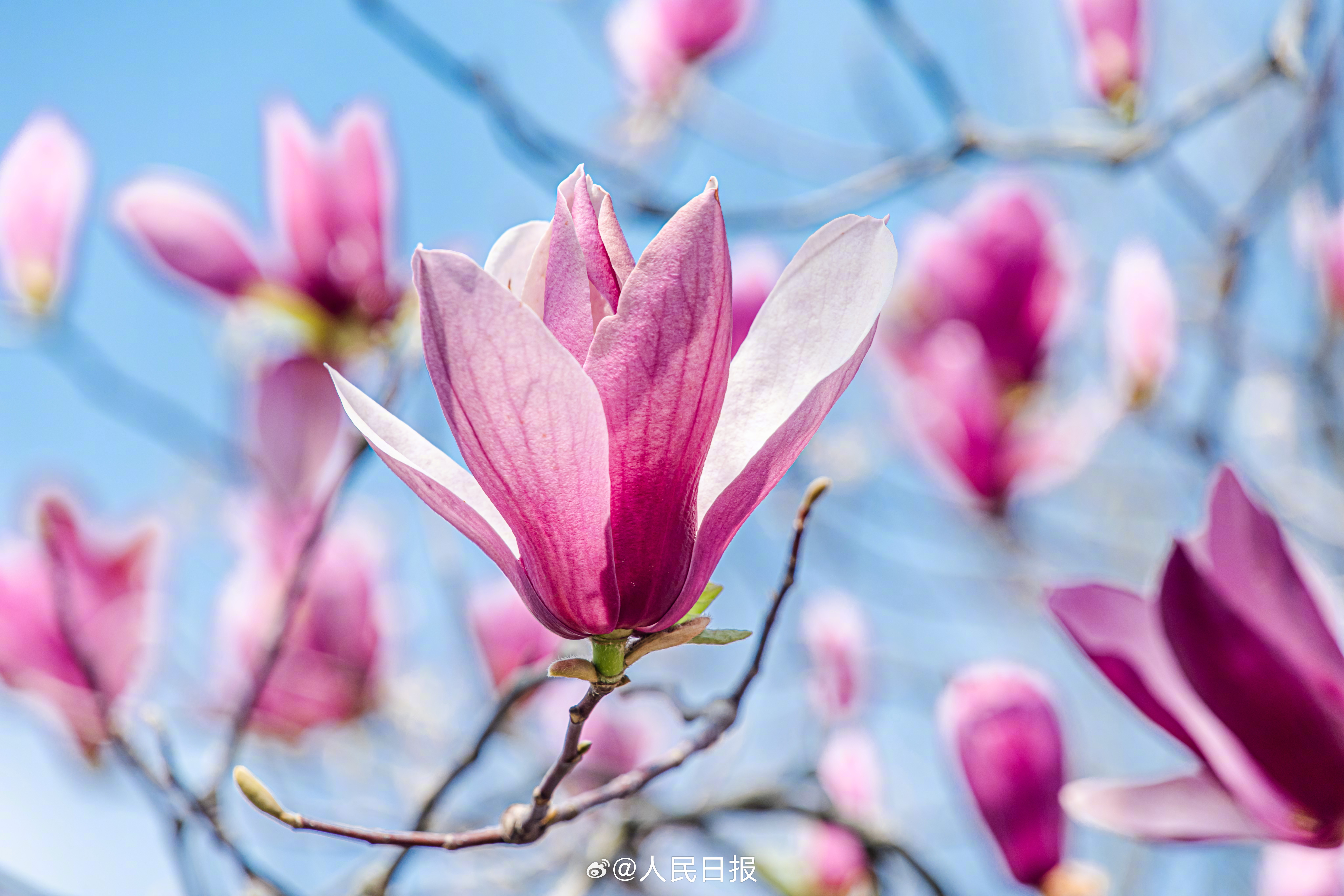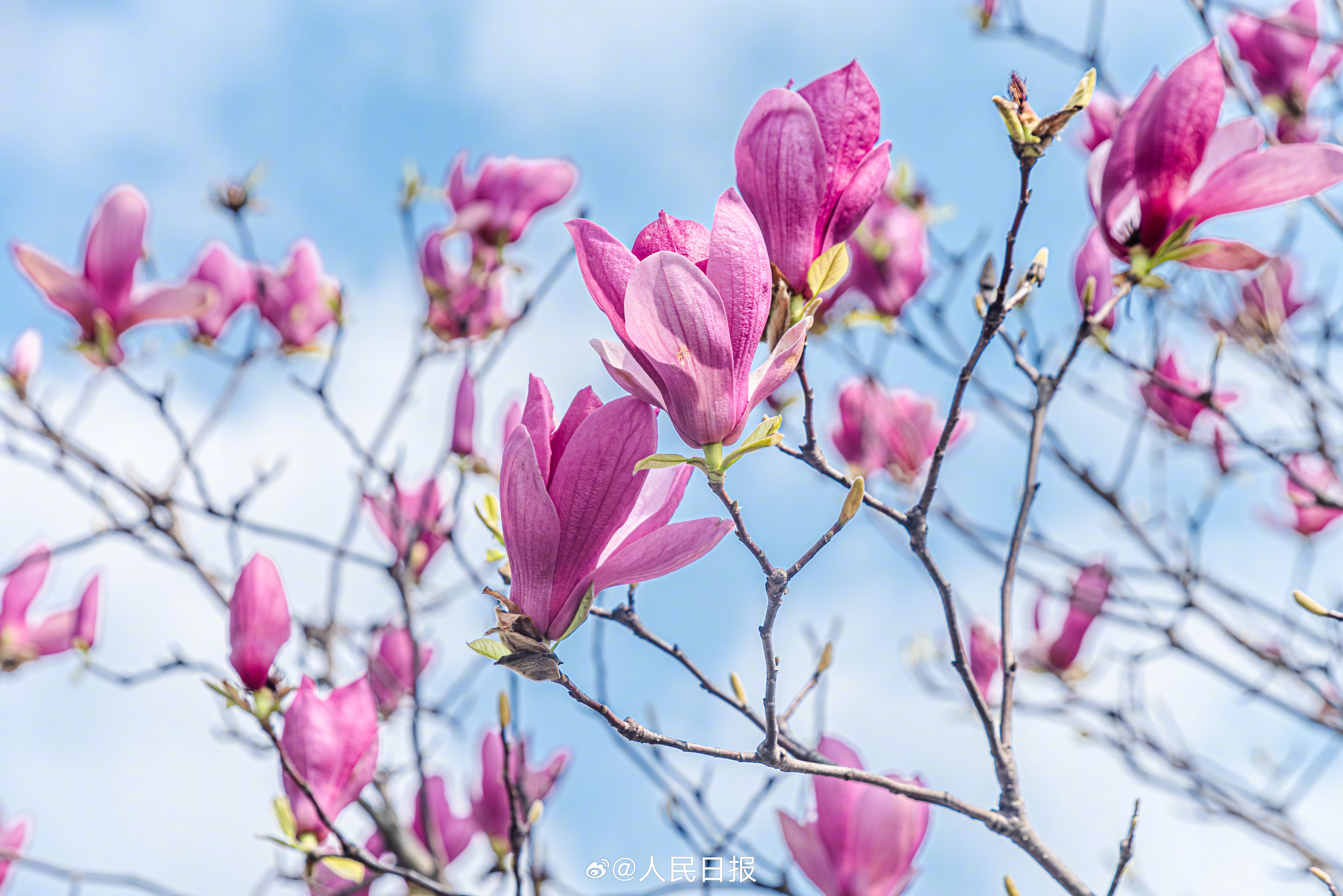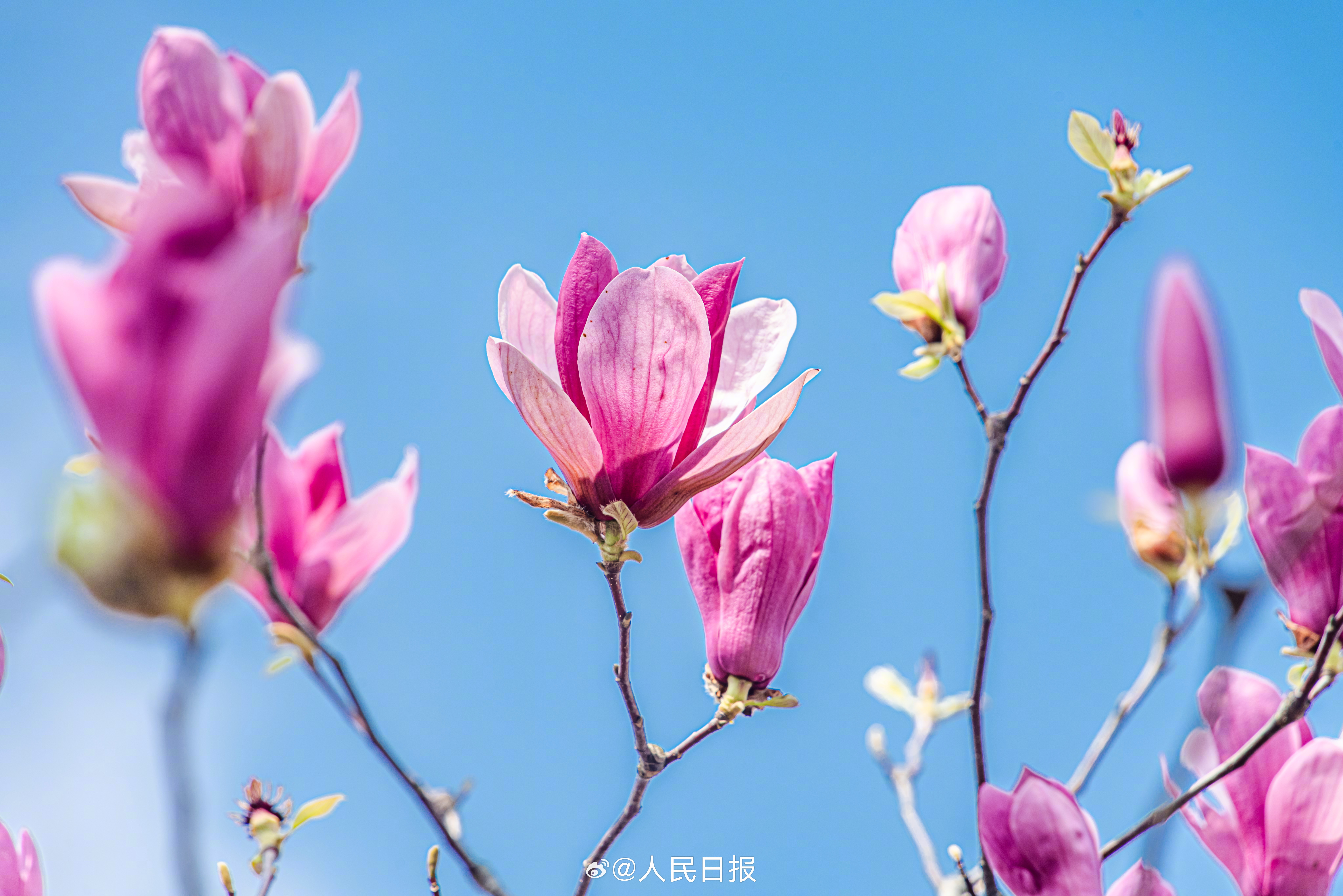 3月10日,江西赣州,玉兰花在蓝天的映衬下芬芳多姿,美丽醉人。转存收藏!