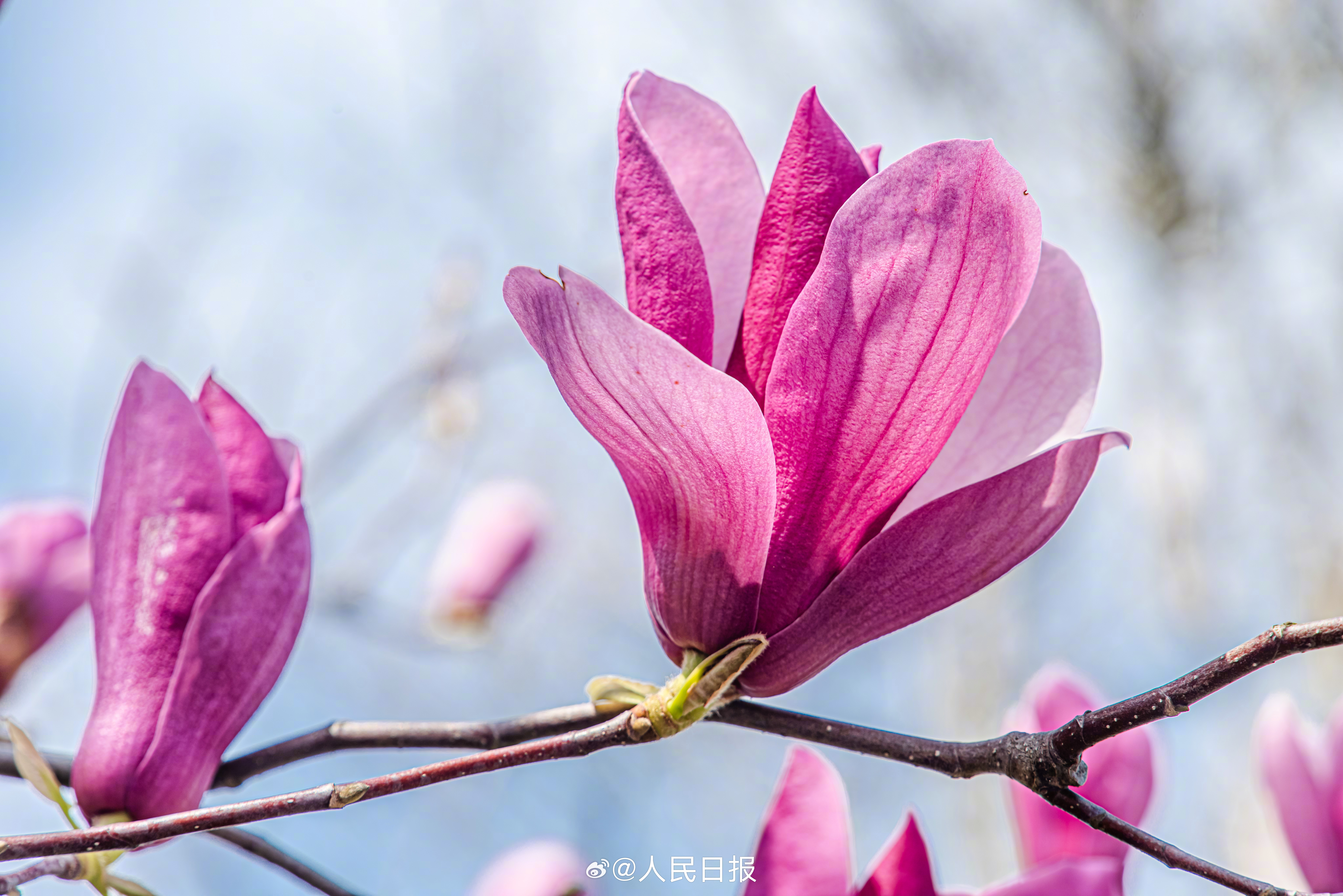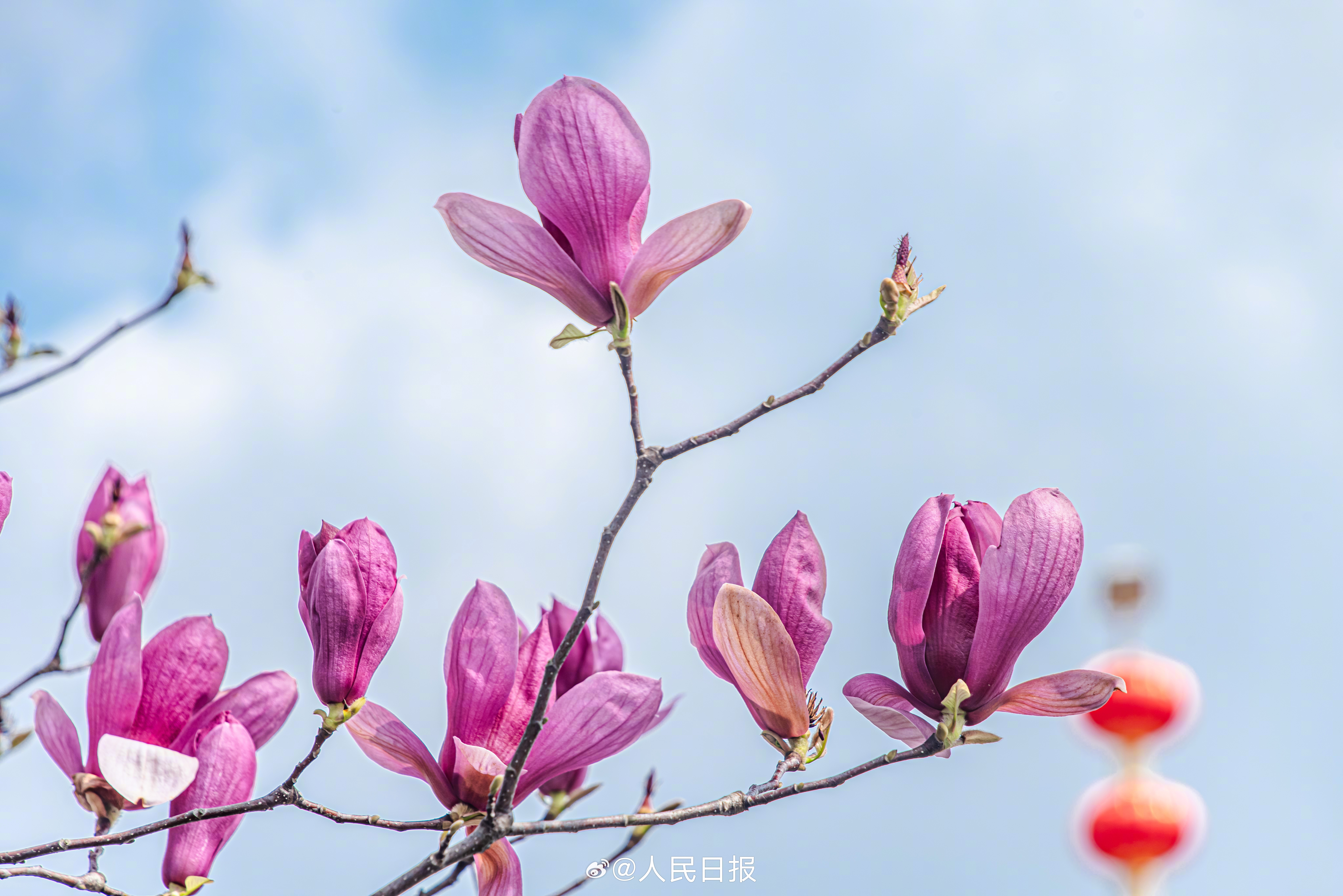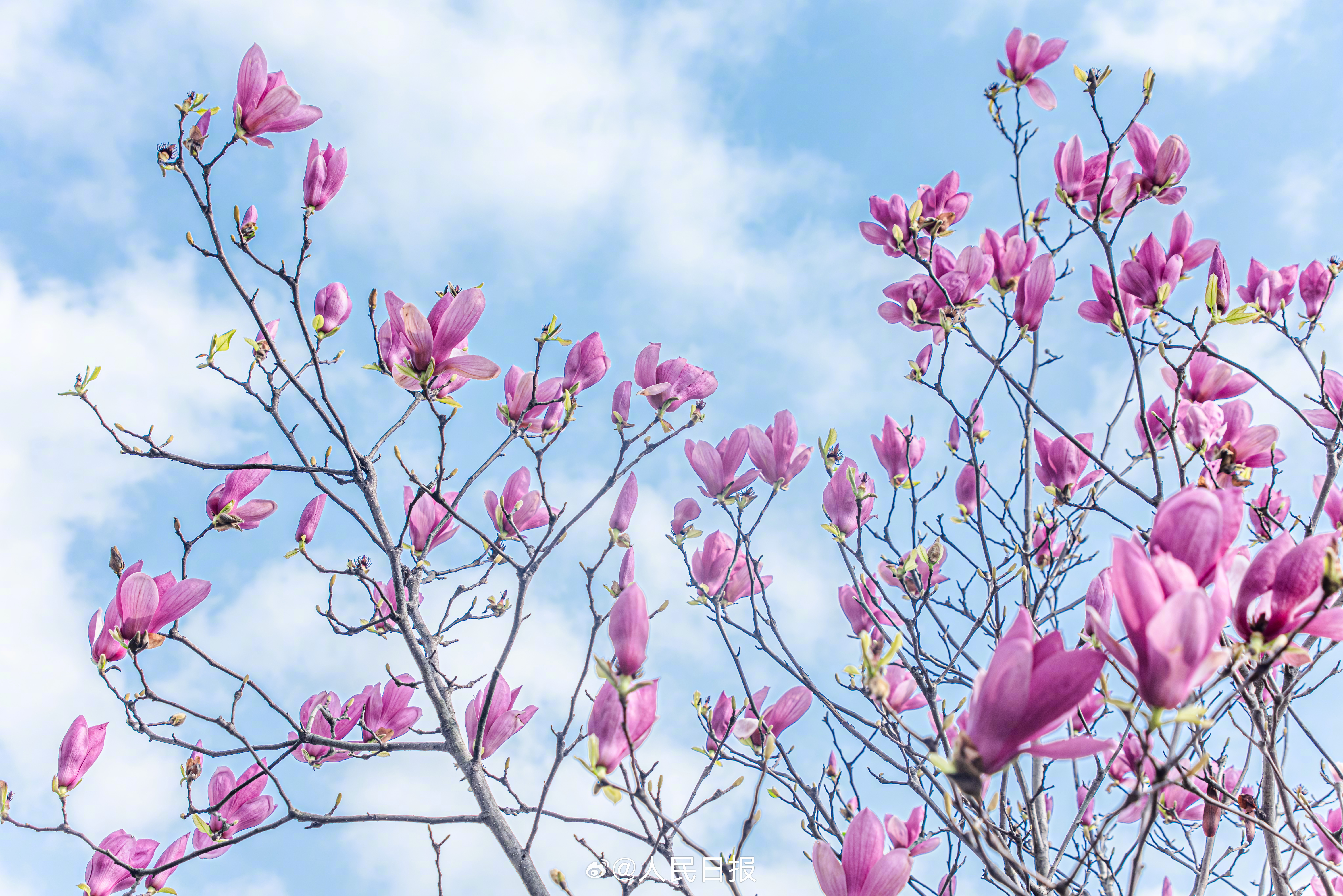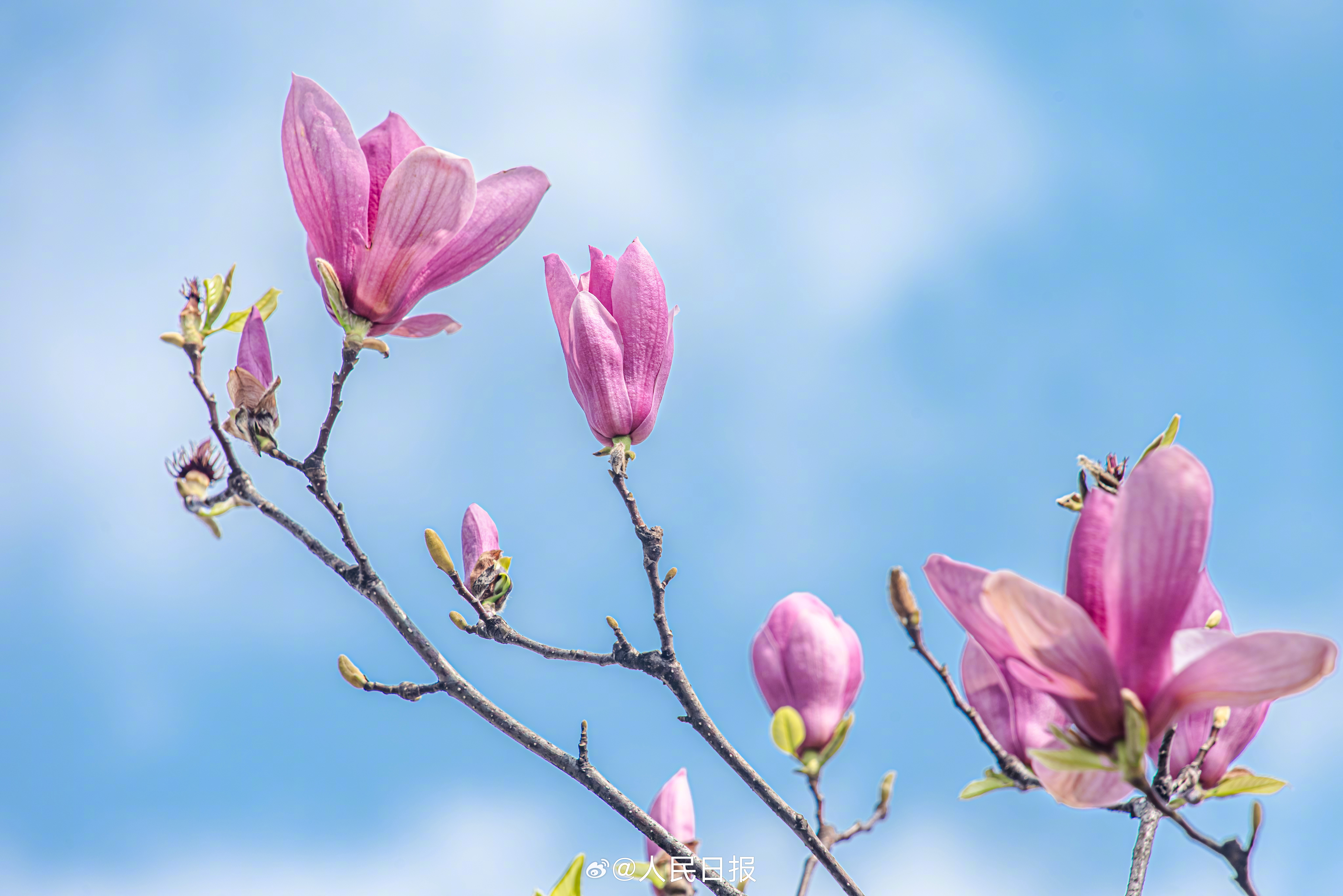 3月10日,江西赣州,玉兰花在蓝天的映衬下芬芳多姿,美丽醉人。转存收藏!
