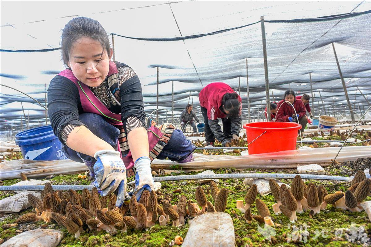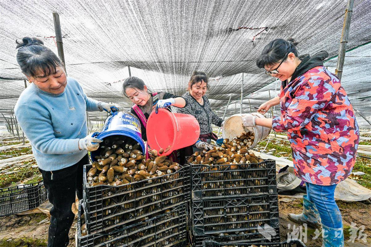 3月9日,黄冈市浠水县戴家洲,农户在大棚内采收羊肚菌。近年来,当地立足长江岸线土地资源禀赋,破解洲滩土地综合利用难题,通过“科学规划+产业引领”模式,依托羊肚菌等高附加值作物,构建起“种植+加工+销售”全产业链,既盘活了土地存量,又拓宽了农户增收渠道,成为带动群众致富、推动乡村产业振兴的 “金疙瘩”,绘就出一幅土地增效、农民增收的乡村振兴新画卷。(视界网 王江 摄)