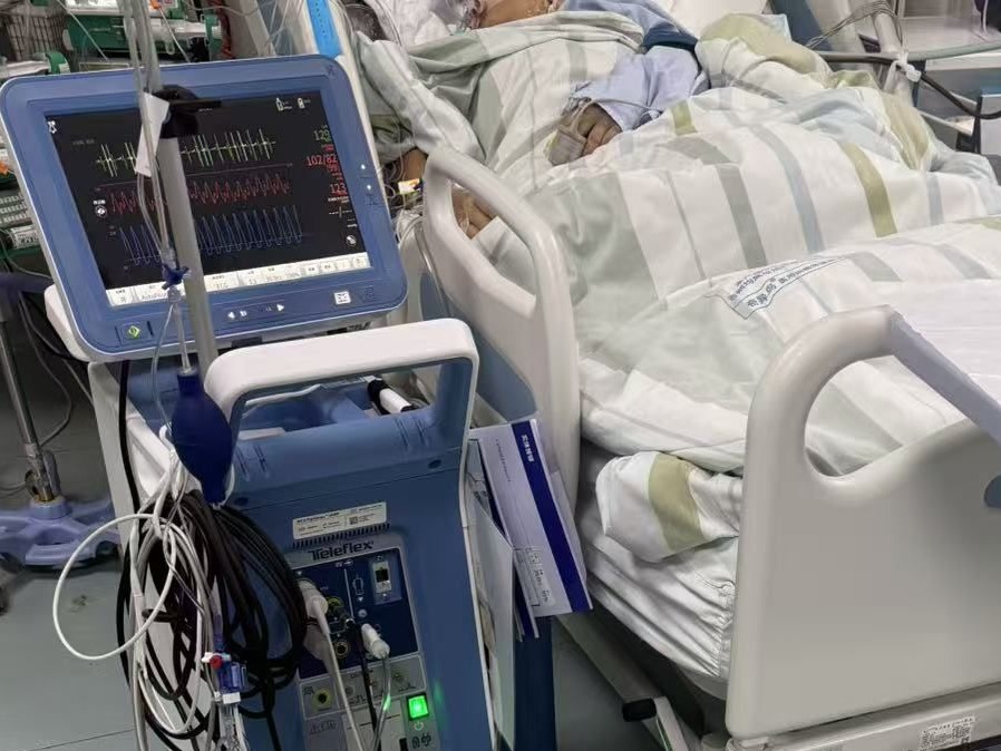 一边是术后必须坚持的抗凝治疗,另一边是肢体不断加重的血肿。面对这一棘手矛盾,杨佳伟紧急联系放射介入科进行多学科会诊。专家们权衡利弊,并与家属充分沟通后,决定暂维持治疗,在病床边严密观测,同时动态调整IABP的辅助比例。