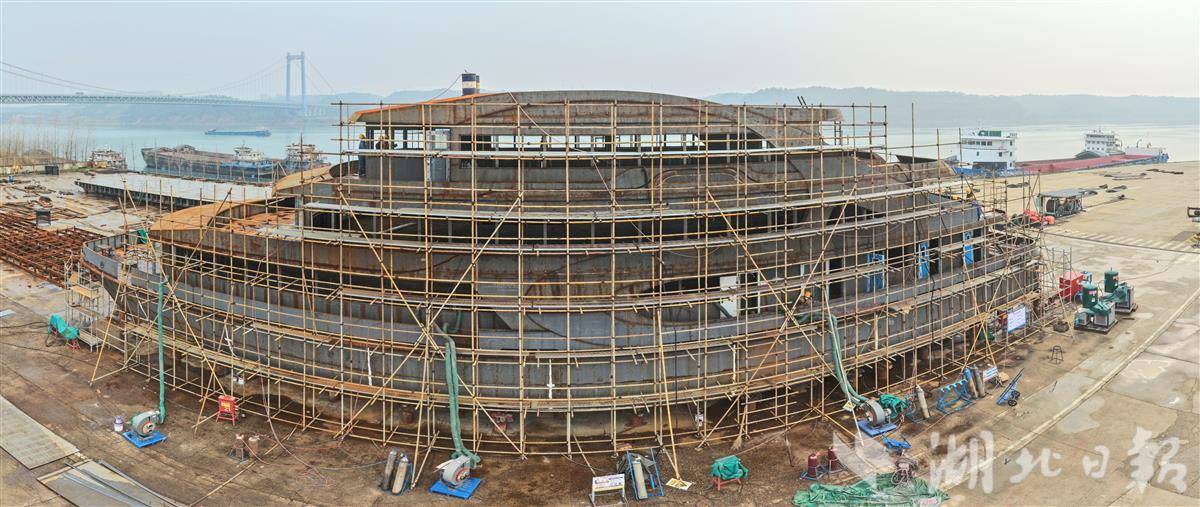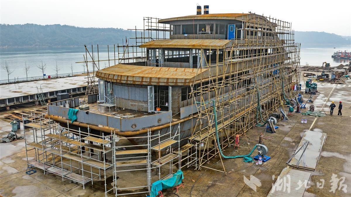 3月9日,位于宜都市高坝洲镇的湖北江辉海工装备有限公司产业园内,一艘为神农溪景区定制的纯电动观光游船正加紧建造,计划于4月底交付。