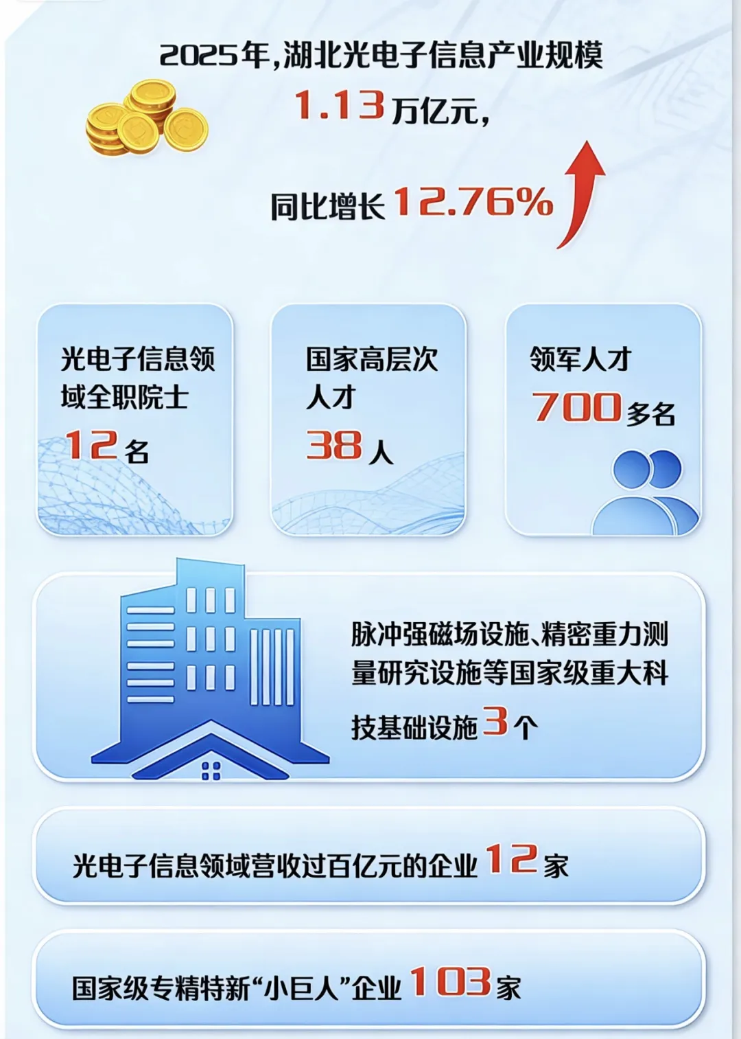 一批创新平台落地见效:九峰山实验室获评国家级中试平台,“芯光链”供应链平台注册用户过万,超200亿元产业基金投向硬科技领域……湖北光电子信息产业正在从单点突破迈向集群发力,让创新成果能够快速转化为产业优势。