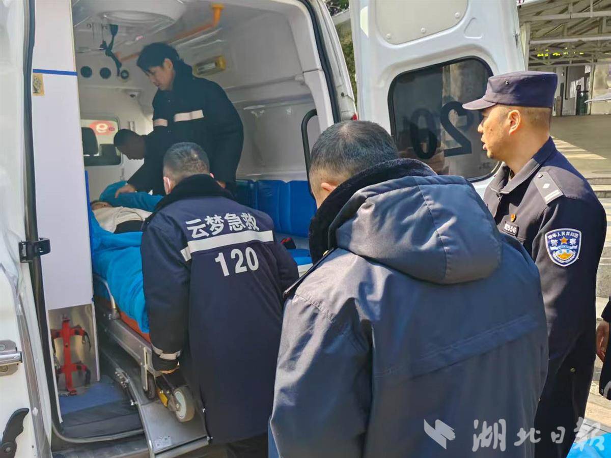12时35分,救护车抵达云梦站。由于孕妇情况特殊无法随意移动,车站工作人员依据此前积累的应急经验,与急救人员紧密配合,采用“众人托举”的方式,将其平稳转移至救护车,家属随车陪同前往云梦县中医院。