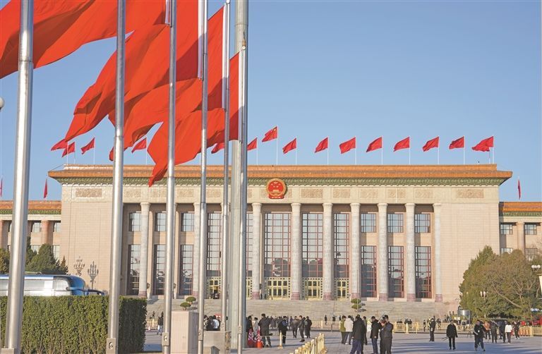 图为3月11日上午,全国政协十四届四次会议在北京人民大会堂举行闭幕会。这是人民大会堂外景。记者 陶玥 摄