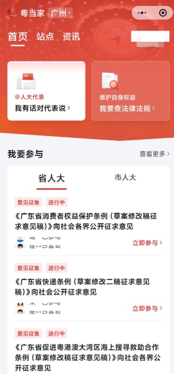面向群众,立法意见征集渠道同样畅通。“粤当家”小程序首页在最显眼的位置设置意见征集板块。记者登录小程序,点击省、市两级多个条例(草案修改稿、征求意见稿),目录、详细内容清晰可查。用户只需点击界面上方区域,即可输入意见。来自一线的声音,让立法更贴合民生需求。