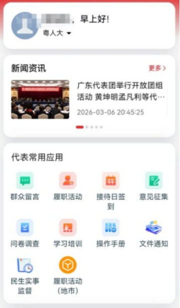 “粤人大”应用界面部分功能。