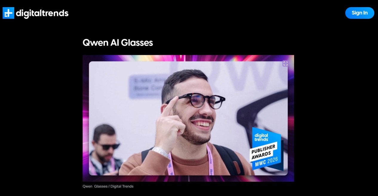 2026年3月2日至5日,西班牙巴塞罗那。2026年世界移动通信大会上,阿里巴巴展出“千问AI眼镜”(图源:美国科技媒体Digital Trends网站)