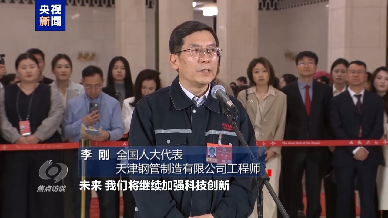 全国人大代表、天津钢管制造有限公司工程师 李刚:一定要把核心技术牢牢掌握在自己手中,未来我们将继续加强科技创新,用我们造出的钢管锻造大国重器的钢铁脊梁。