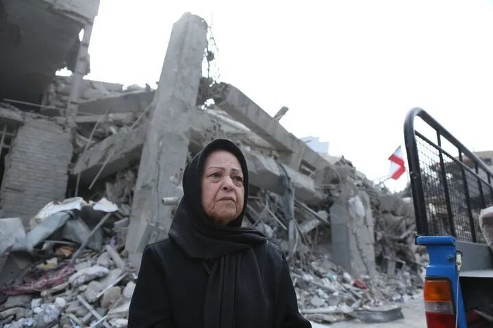 3月12日,在伊朗首都德黑兰,市民站在建筑废墟前。新华社记者 沙达提 摄