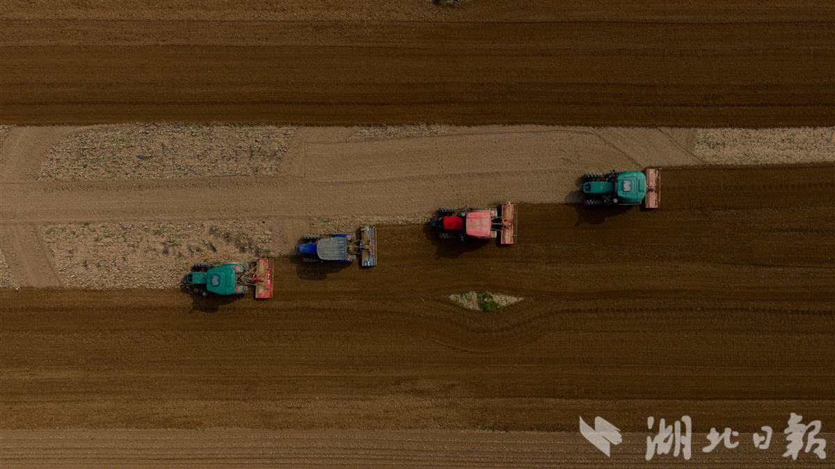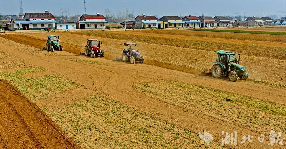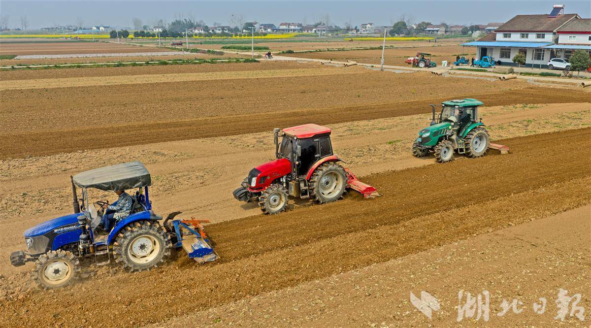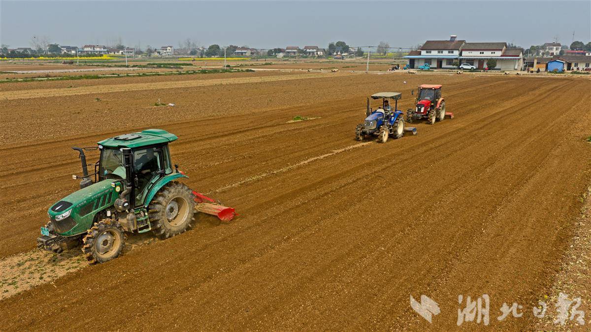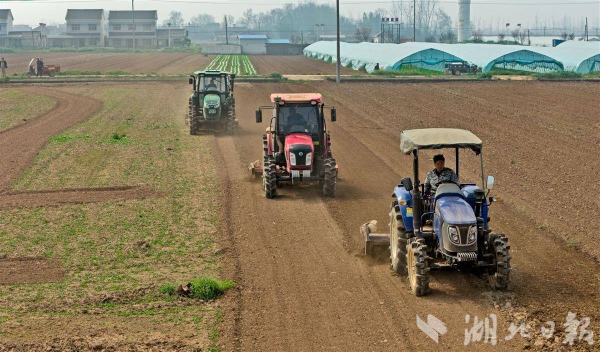 3月12日,当阳市坝陵街道群益村田野上春意盎然,四台旋耕机开足马力穿梭田间,开展精细化翻耕作业,正式拉开当地春季蔬菜栽种序幕。