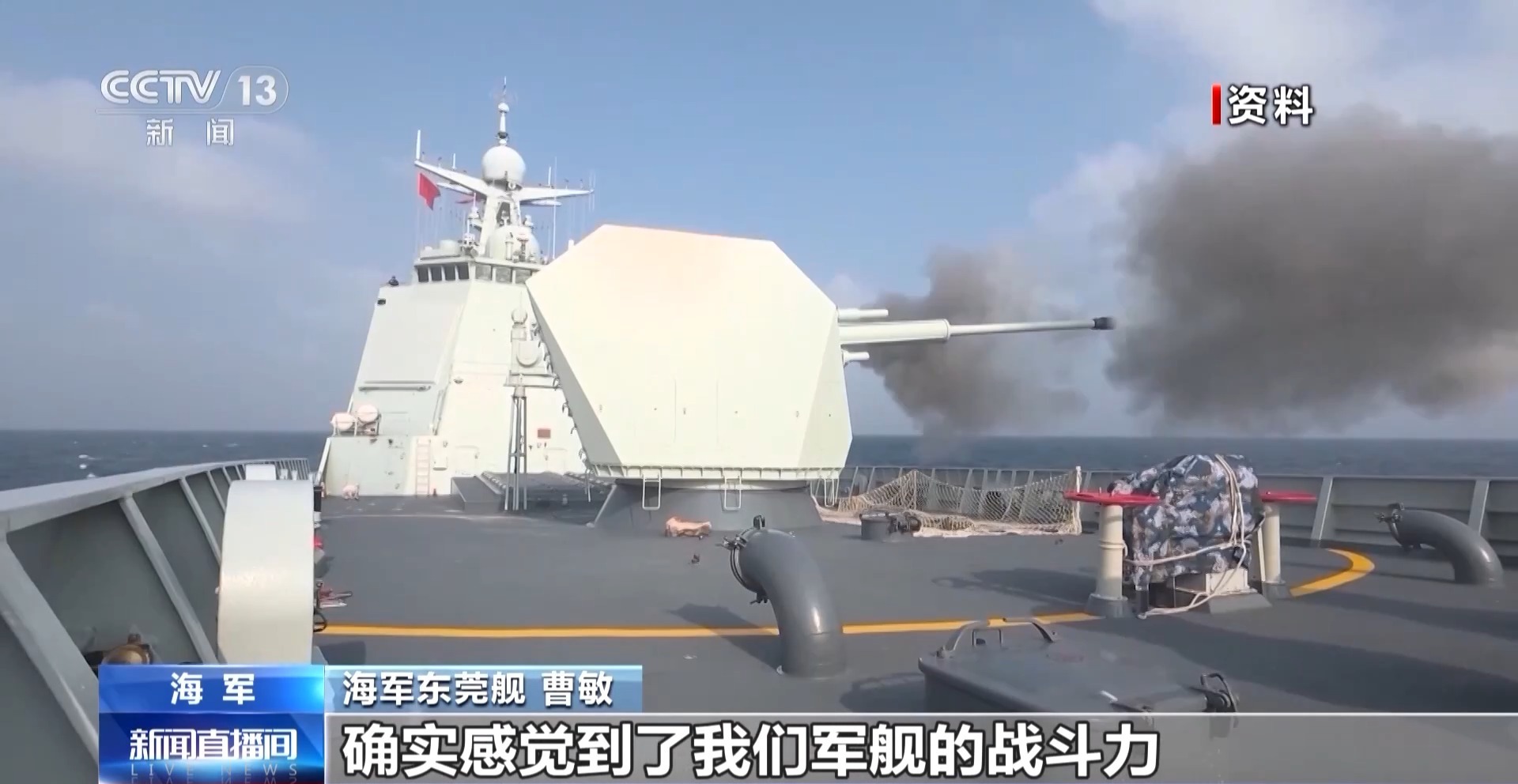 海军东莞舰 曹敏:在驾驶室看到主炮直接命中目标,当时很激动,因为是我第一次看到武器实弹射击,跟我以往的经历都不一样,而且口令是通过信号兵传递上来的,立马发射出去,我觉得我们这个岗位还是很重要的,确实感觉到了我们军舰的战斗力,当时觉得我的选择没有错,来对了,我想在这里坚持下去。