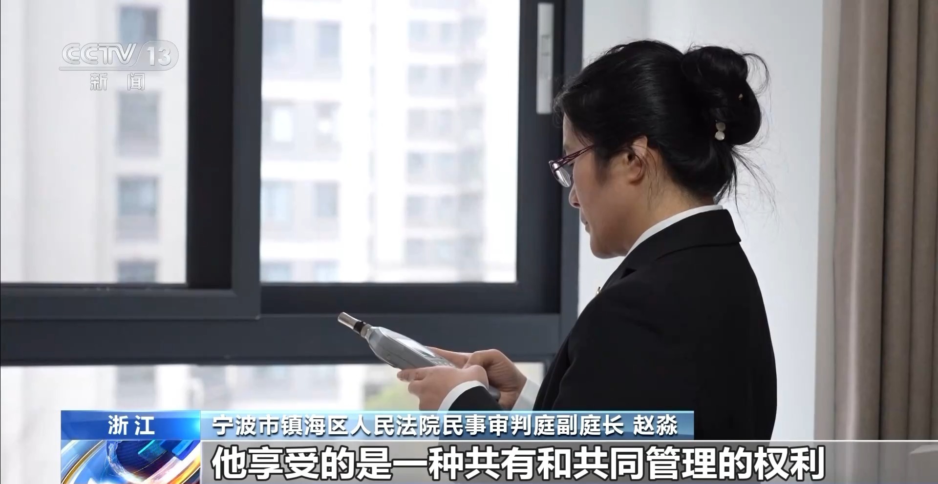 宁波市镇海区人民法院民事审判庭副庭长 赵淼:它是一个多层的住宅,当事人享受的不是所有权,而是建筑物区分所有权,对于专有的部分是享有所有权,但是对于公有的部分,享受的是一种共有和共同管理的权利,他是可以合理使用,但是绝对不能影响到别人的权利。