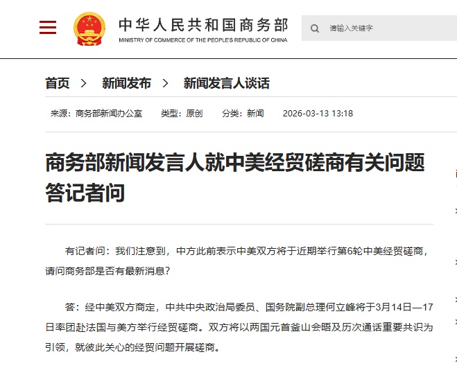 答:经中美双方商定,中共中央政治局委员、国务院副总理何立峰将于3月14日—17日率团赴法国与美方举行经贸磋商。双方将以两国元首釜山会晤及历次通话重要共识为引领,就彼此关心的经贸问题开展磋商。