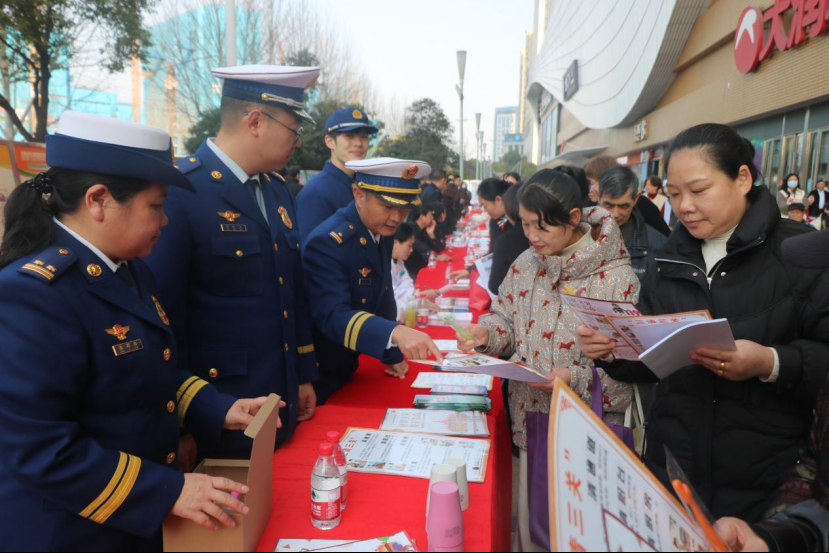 活动现场热闹非凡。大队在广场设立消防宣传咨询台,摆放宣传资料、文创礼品以及灭火器、防烟面罩等消防器材;咨询台旁,图文并茂的宣传展板有序排列,吸引过往市民纷纷驻足观看。