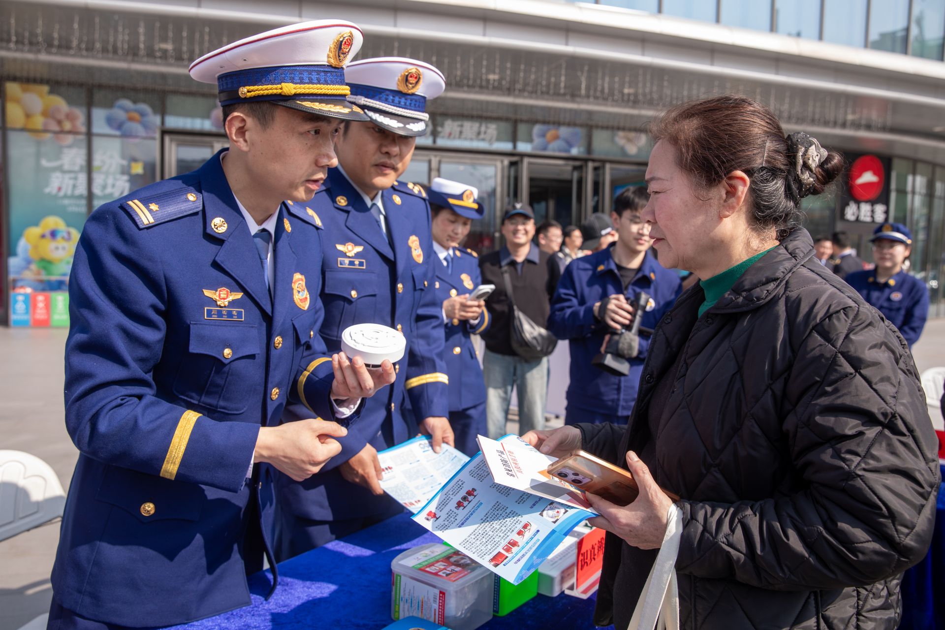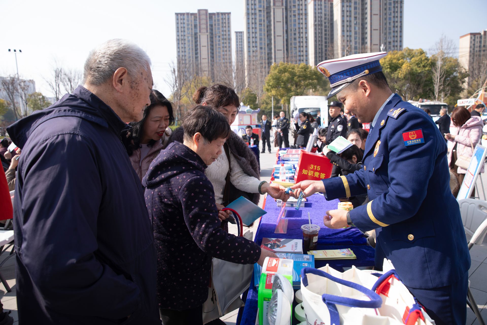 此外,消防监督员还向过往群众发放了《消防知识宣传手册》《消防安全科普50条》《消防产品手册》等宣传资料,搭配印有消防元素的帆布包、手提袋等文创礼品,让消防安全知识更加深入人心。