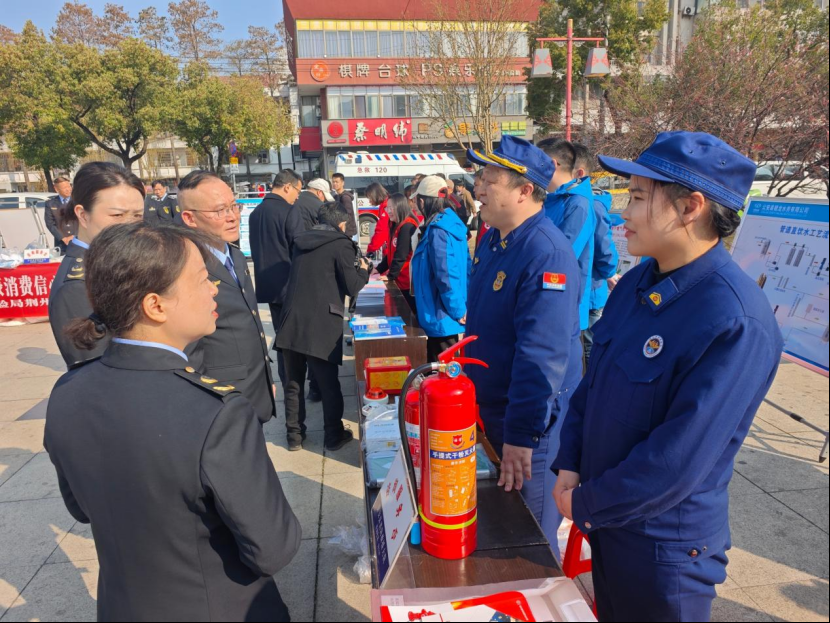 活动现场,大队宣传人员设立了专门的消防产品咨询台和真伪对比展示区。桌上整齐摆放着灭火器、应急照明灯、疏散指示标志、消防水带等常见消防产品,既有符合国家标准的合格产品,也有大队在前期检查中查获的假冒伪劣样品,形成了鲜明对比。