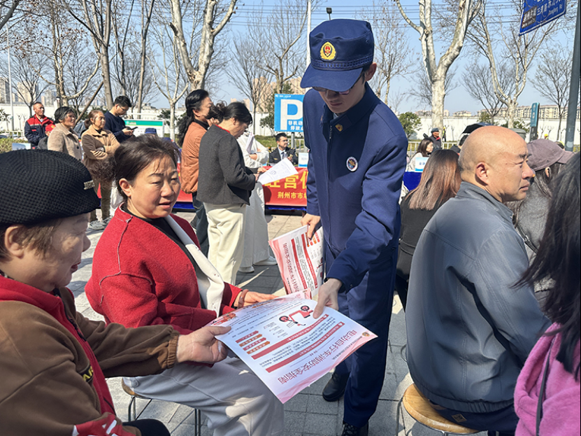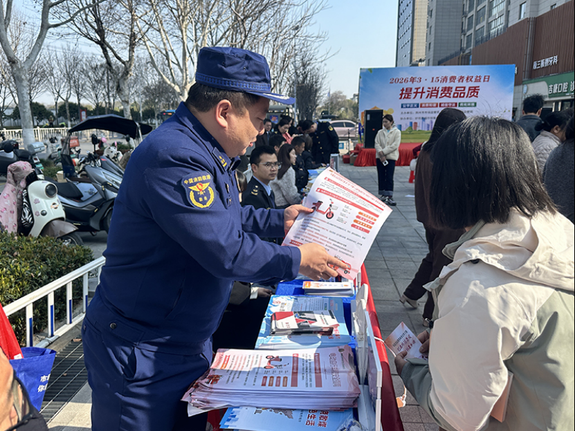 荆楚网(湖北日报网)讯(通讯员 何如)3月13日,荆州市经开区消防救援大队联合市场监督管理局、烟草局等10余家单位,在恒隆时光里商圈开展“提升消费品质”3·15消费者权益日消防宣传活动,进一步维护消费者合法权益,提升群众消防产品真伪辨别能力,净化消防产品市场环境。