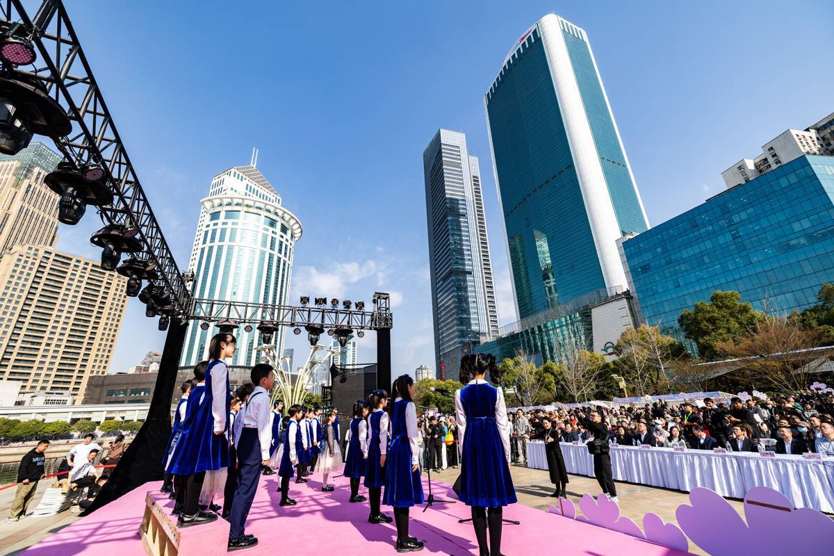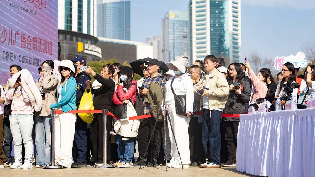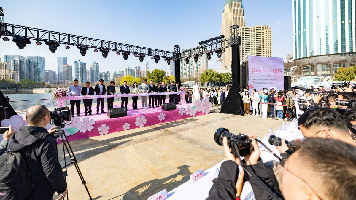 2026年3月13日,2026武汉市江汉区“风雅西北湖”赏樱艺术季活动在武汉西北湖公园广场主舞台启幕,吸引大批市民游客前来参加。(湖北日报全媒记者 何宇欣 摄)