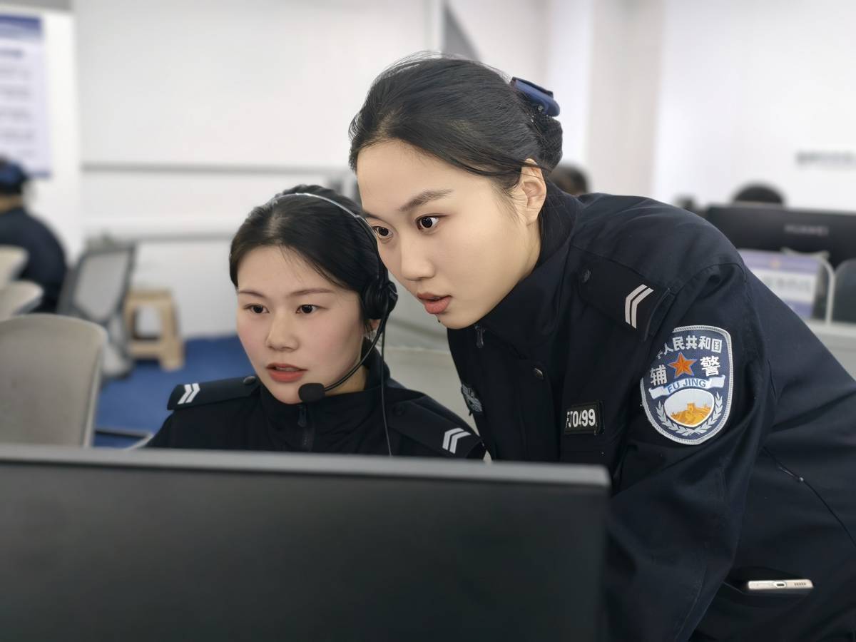 接警员王苗(左)和邹祈安。(湖北日报全媒记者刘毅摄)