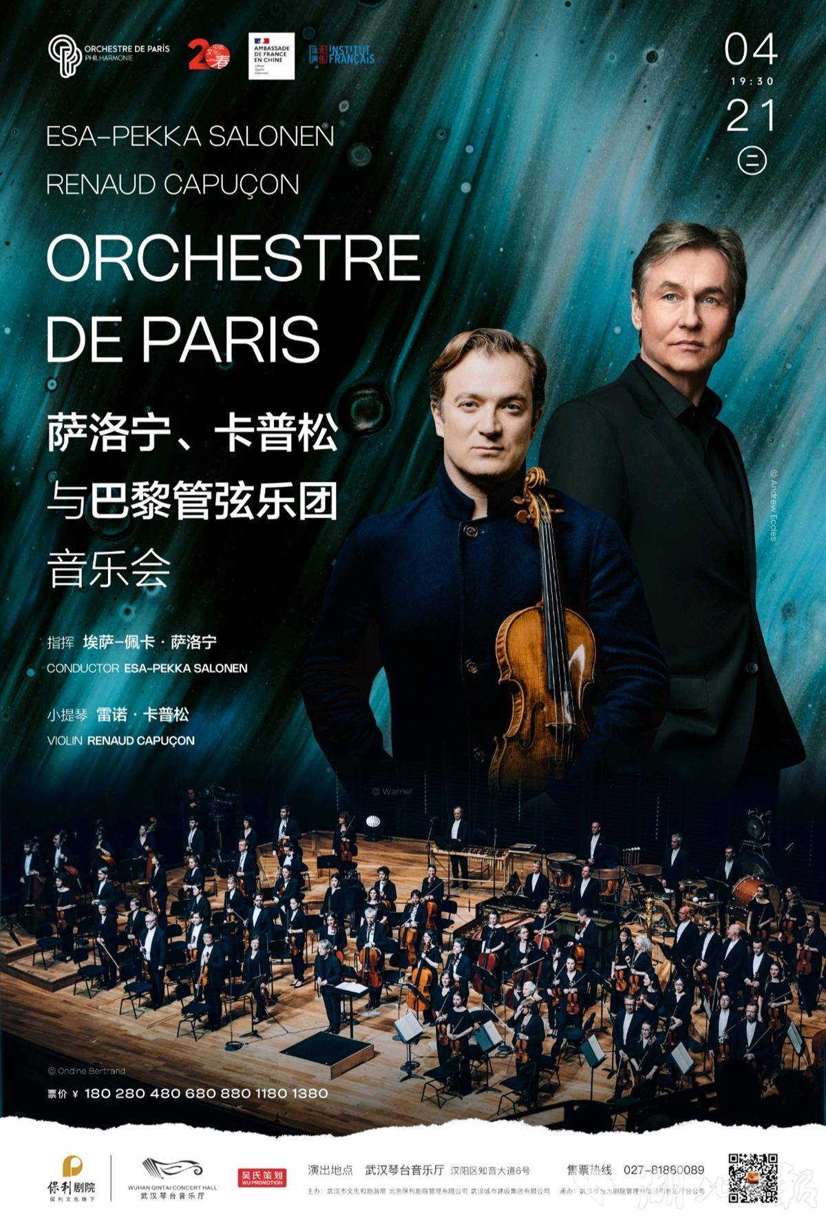 4月21日,巴黎管弦乐团将登陆琴台音乐厅,由指挥家埃萨-佩卡·萨洛宁执棒,联袂小提琴家雷诺·卡普松呈现交响盛会。4月25日,歌唱家龚琳娜将携手多位演奏家,将首度在武汉完整演绎千古名篇《胡笳十八拍》。