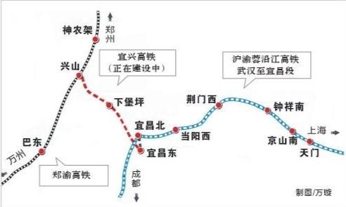 宜兴高铁今年内建成通车后,郑渝高铁与沿江高铁将在宜昌“牵手”,形成湖北高铁东西向的新格局。届时,兴山至宜昌的车程将由目前的2小时缩短至20分钟左右。武汉至重庆最短运行时间有望压缩至4小时。