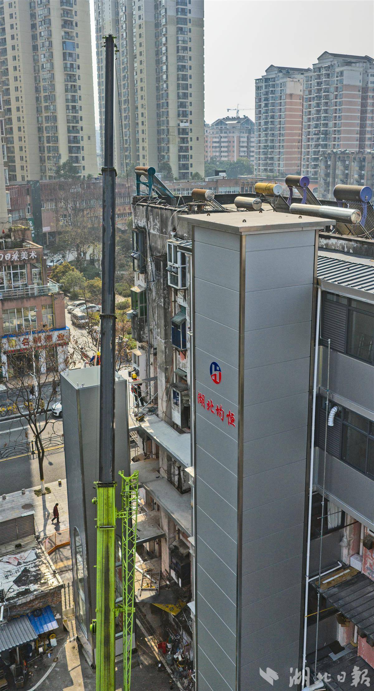 葛洲坝片区作为宜昌老旧居民楼集中区域,已启动数十部电梯加装项目,樵湖二路、清波路等路段老旧小区改造与电梯加装同步实施,既改善了居住环境,也显著提升居民生活品质。(湖北日报全媒记者 刘曙松 摄)