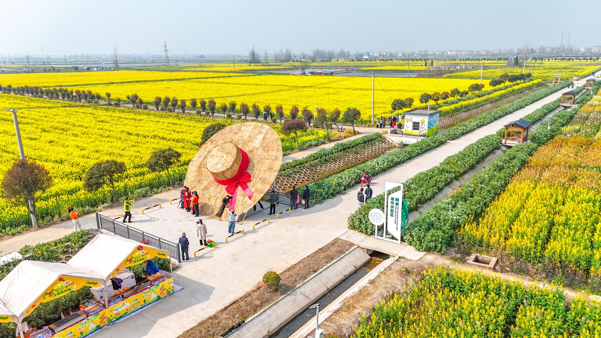 金草帽千亩七彩油菜花海已化作斑斓的画卷,铺展在江汉平原的春光里。
