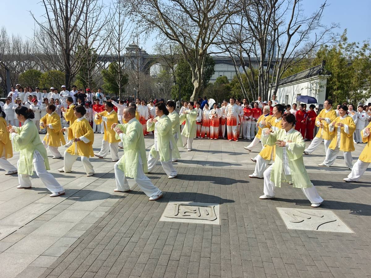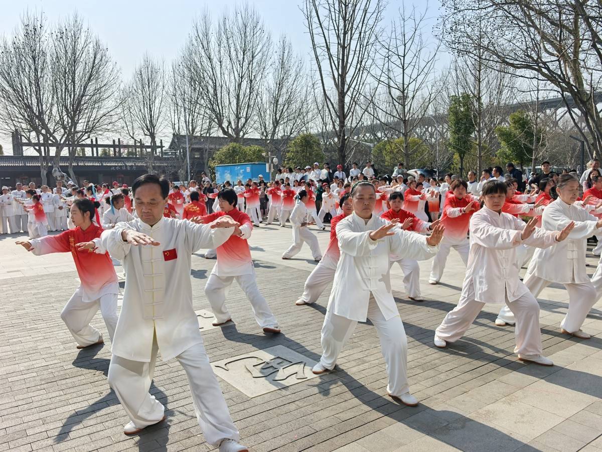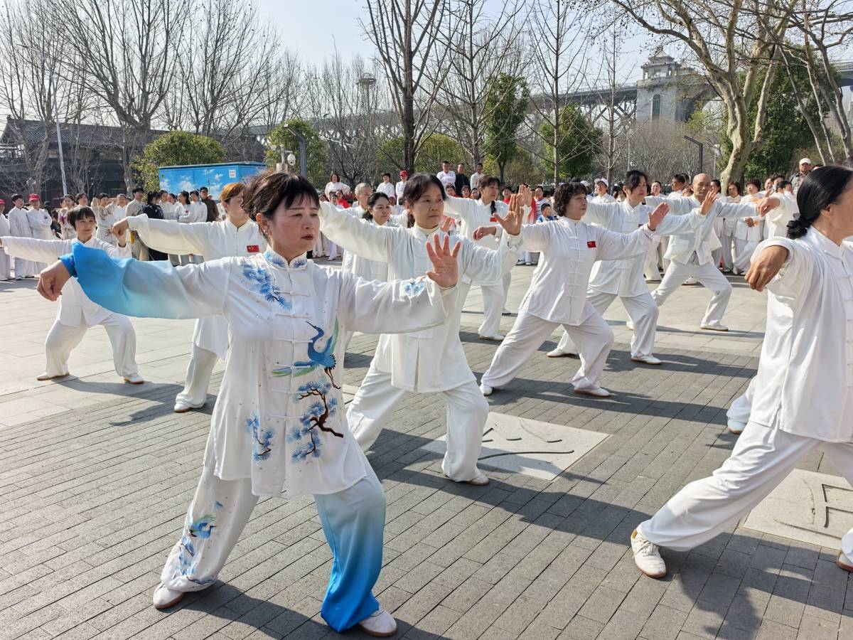 湖北日报讯(记者童军鹏)春和景明,樱花吐艳。3月14日,武汉龟山公园广场衣袂翩跹、拳势舒展,首个“国际太极拳日”湖北展演活动在此举行,来自全省各地的430名太极爱好者以拳会友、以武传文,共赴这场传统文化与全民健身相融的盛会。