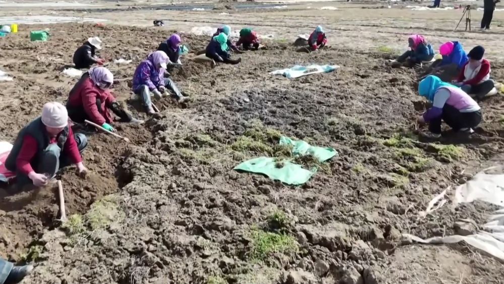 甘肃省定西市岷县是西北中药材主产区之一,尤以当归驰名,素有“千年药乡”美誉。当前正值中药材种苗采挖关键时期,当地药农们抢抓有利墒情,在田间地头采挖、捆扎药苗,为后续春耕种植做准备。