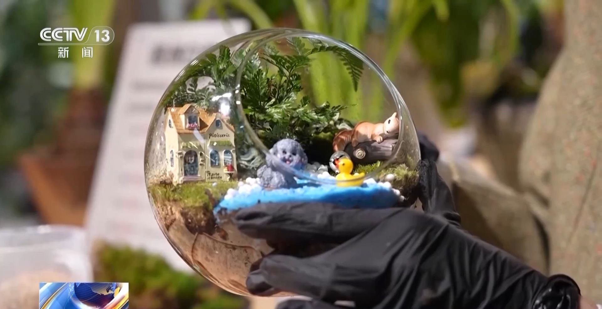 总台记者 廖望:一个独一无二的植物微景观就已经做出来啦。其实整个过程有意思的是,你可以用不同材质的沙石营造出各种景观,比如说园林、沙漠、溪流等等。整个过程不只是手工体验,我还感觉身心也得到了放松。