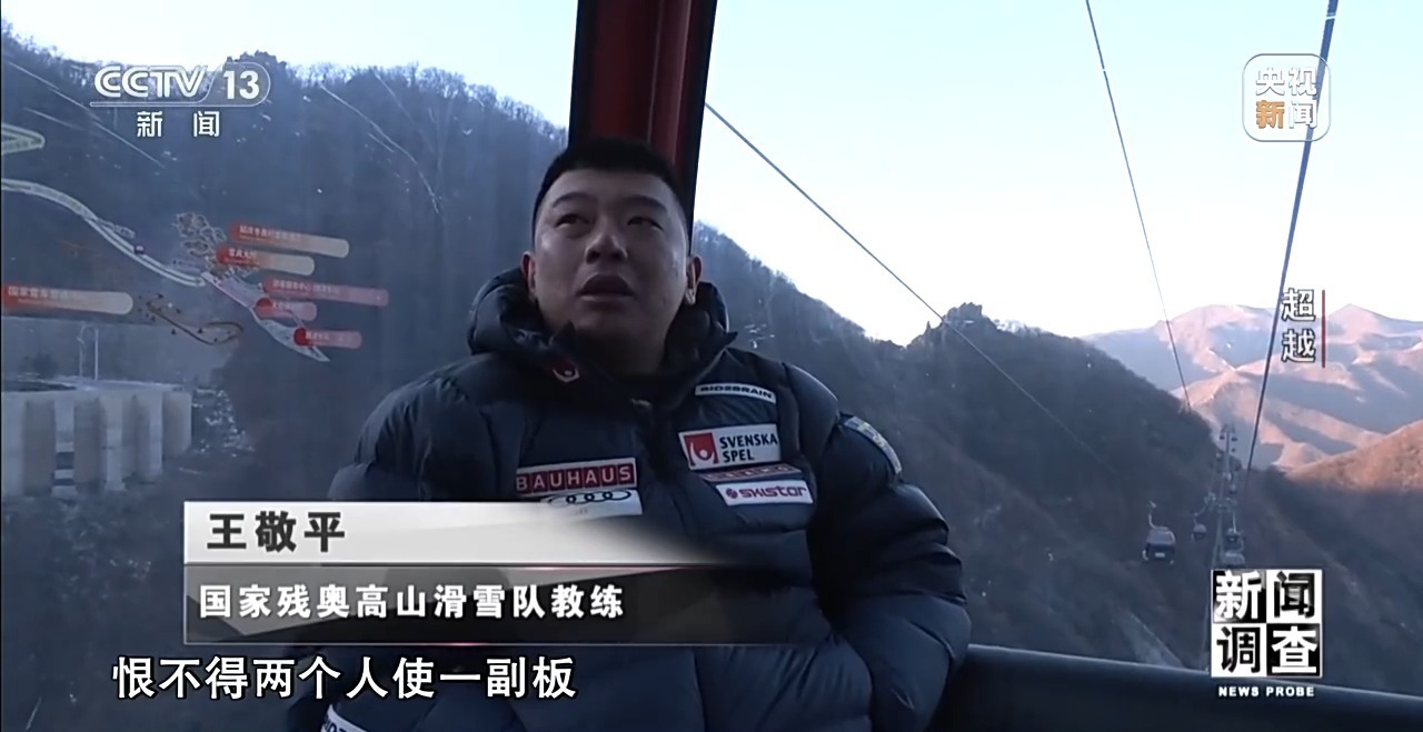 国家残奥高山滑雪队教练 王敬平:以前器材捉襟见肘,恨不得两个人使一副板。今天你练完,明天我再用这个练,现在是一人可以有四副板。从2018年平昌到2022年北京,再到2026年米兰,这三届奥运会一点点把咱们家底攒下来了。
