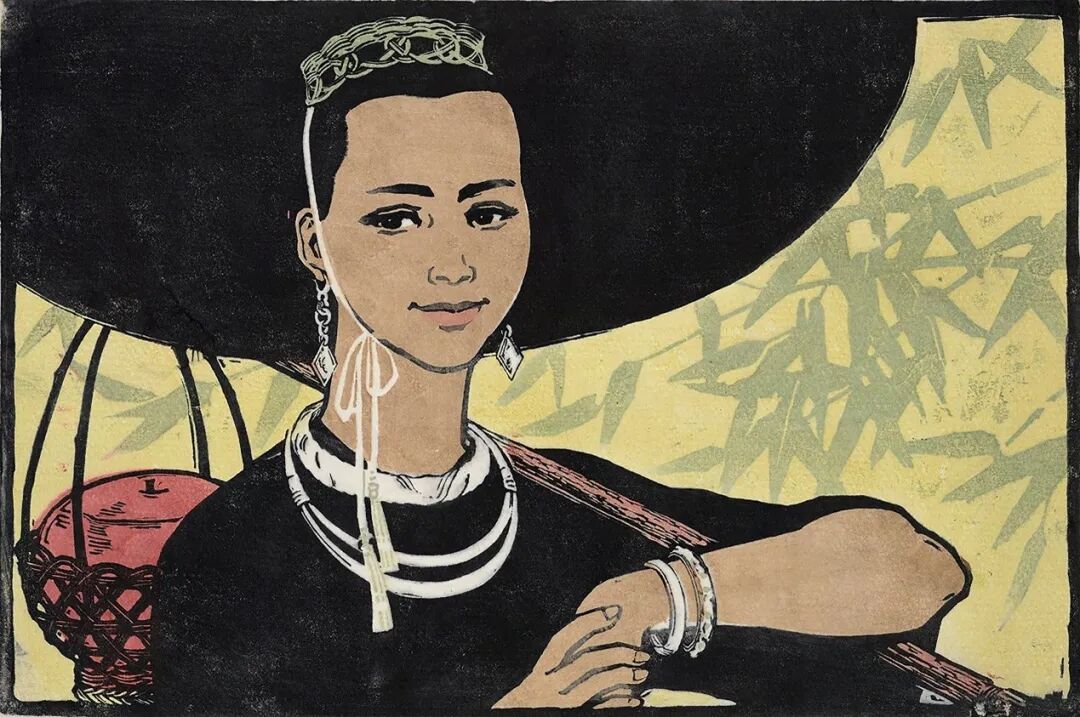 版画《侗族姑娘》,作者何韵兰。