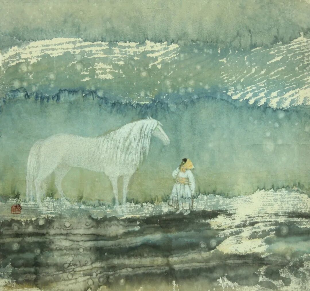 我的艺术之路,是一段自我发现与且行且悟的曲折旅程。艺术启蒙于不教而教的“自然美育”和“野蛮生长”,反而使我保持了对艺术原初的兴趣和对美的直觉。1953年中央美术学院附中开始第一届招生时,我便大胆“撞”了进去!9年学院训练开启,我的人生从此改变——可以终生拥抱热爱的艺术。幸运的还有,因为动手能力强、胆子大,青少年时我已开始发表作品。实际上,1979年调到中央戏剧学院任教后,我才拥有了真正的创作条件。当时,我笔下富有东方色彩的民族风情主题、唯美清纯的女性形象以及弥漫着朦胧诗意的风景等作品,广受欢迎,国内外展约不断,多次入选全国美展,使我很快步入优秀女画家行列。1987年我和郁风、肖惠祥、周思聪、聂鸥、庞媛、邵飞等在中国美术馆举办九人画展,我们被认为是中国女性画家的佼佼者。我还发起组织北京女美术家联谊会。至此可以说,江南水乡小丫也算顺风顺水走上令很多人羡慕的成功艺术道路了?是这样吗?
