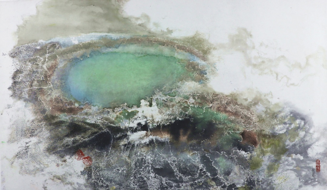 放眼中外美术史,以大自然为主题的艺术创作并不鲜见,我眼中的大自然又是怎样的呢?在我看来,大自然不是背景板,不是风景照,而是我们生命的本源。变幻莫测的大自然与人类的生存状态始终交织在一起。它不只是阳光雨露、青山绿水,也会是地震海啸、狂风沙暴,可以美丽得让你窒息,也可以残酷得令你战栗。大自然独有的神秘、严酷、美丽,带来关于毁灭和再生、瞬间和永恒的真切启示,映照出人类的贪欲有多么荒诞和虚妄,对我的三观和艺术理想都产生了很大影响。认识自然和表现自然,绝不能停留在表面,但怎么表达成为新的难题。