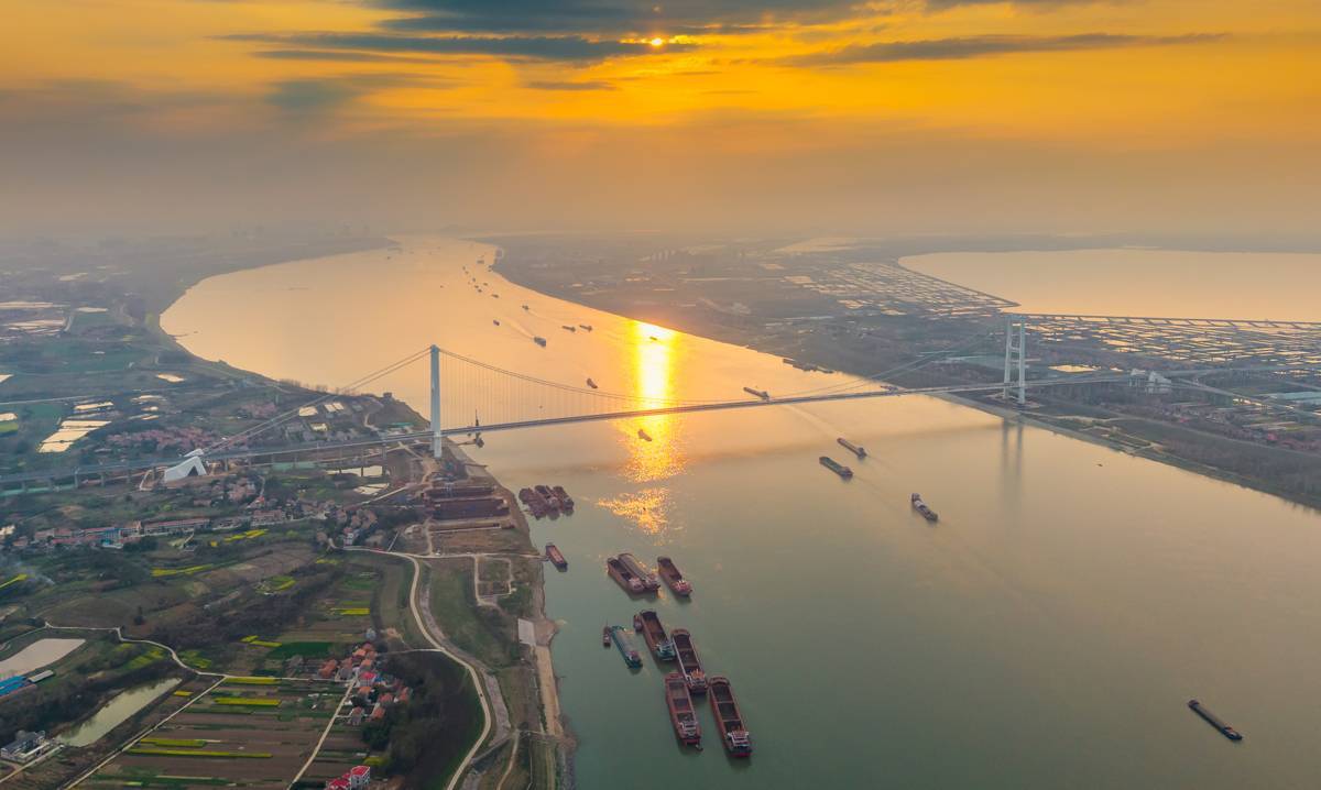 3月14日,航拍武汉双柳长江大桥。(湖北日报全媒记者 柯皓 摄)