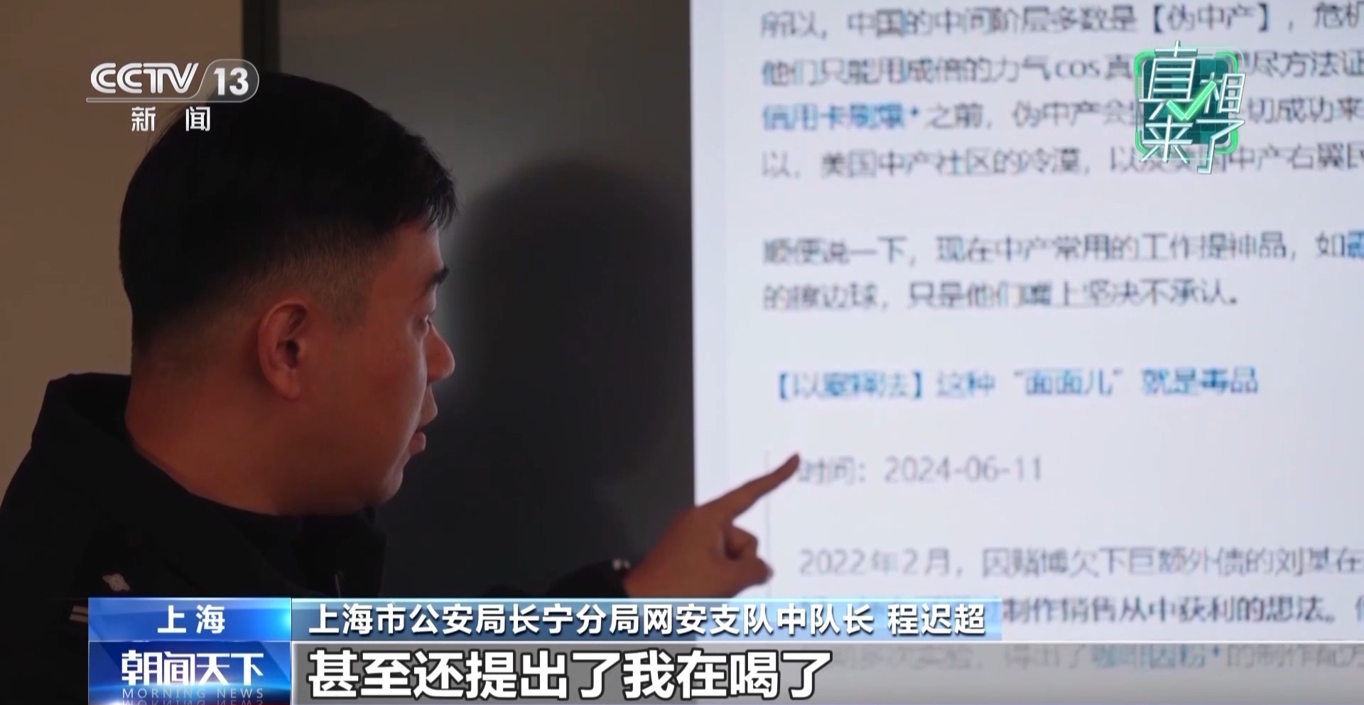 上海市公安局长宁分局网安支队中队长 程迟超:任某文章的最后引用了一篇以前我们公安机关处理的一个案例,是纯咖啡因进行销售运输的一个案子。他把这两个东西进行了一个概念的混淆,引起了网友的大量讨论。有一部分的网友甚至还提出“难道我喝的那些奶茶实际上是在吸毒吗”这种质疑。在上海禁毒委辟谣之前的一些负面帖文,浏览量已经达到了4000多万。