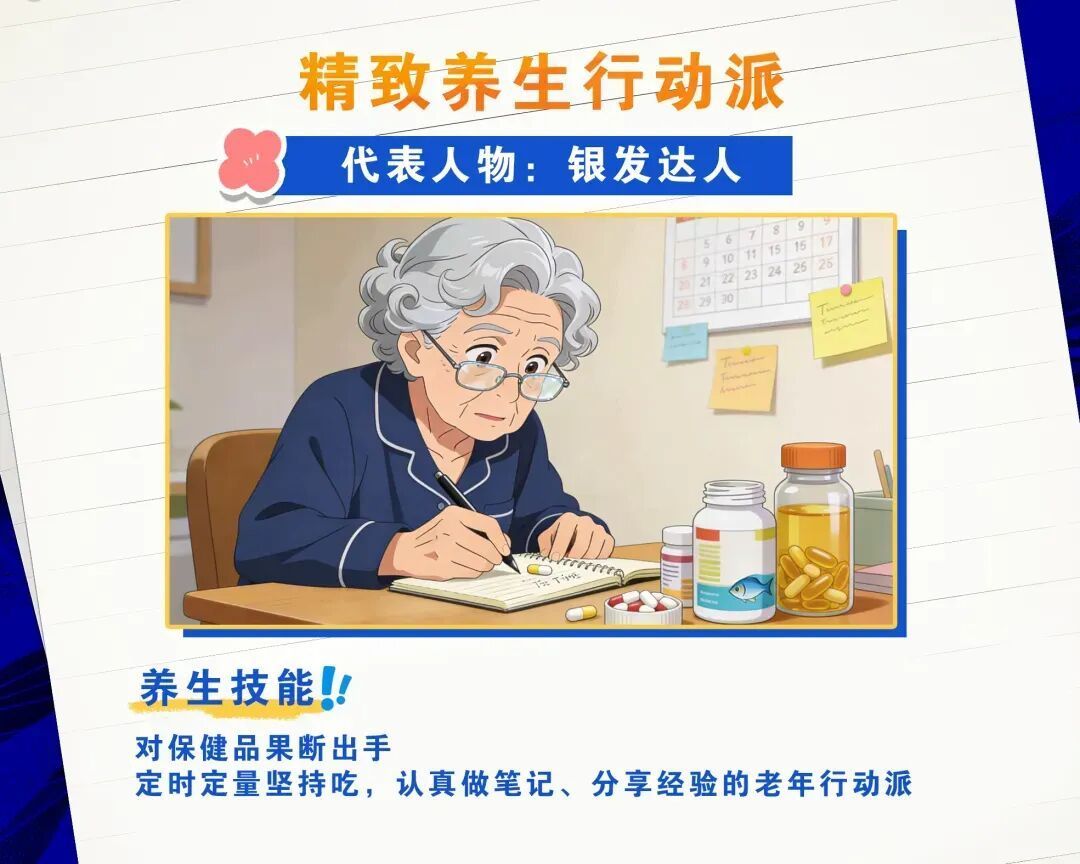 多为银发老年人群,对保健品深信不疑,定时定量服用,还认真记录养生笔记,看似用心,实则盲目跟风。花了冤枉钱,还可能养出坏身体。