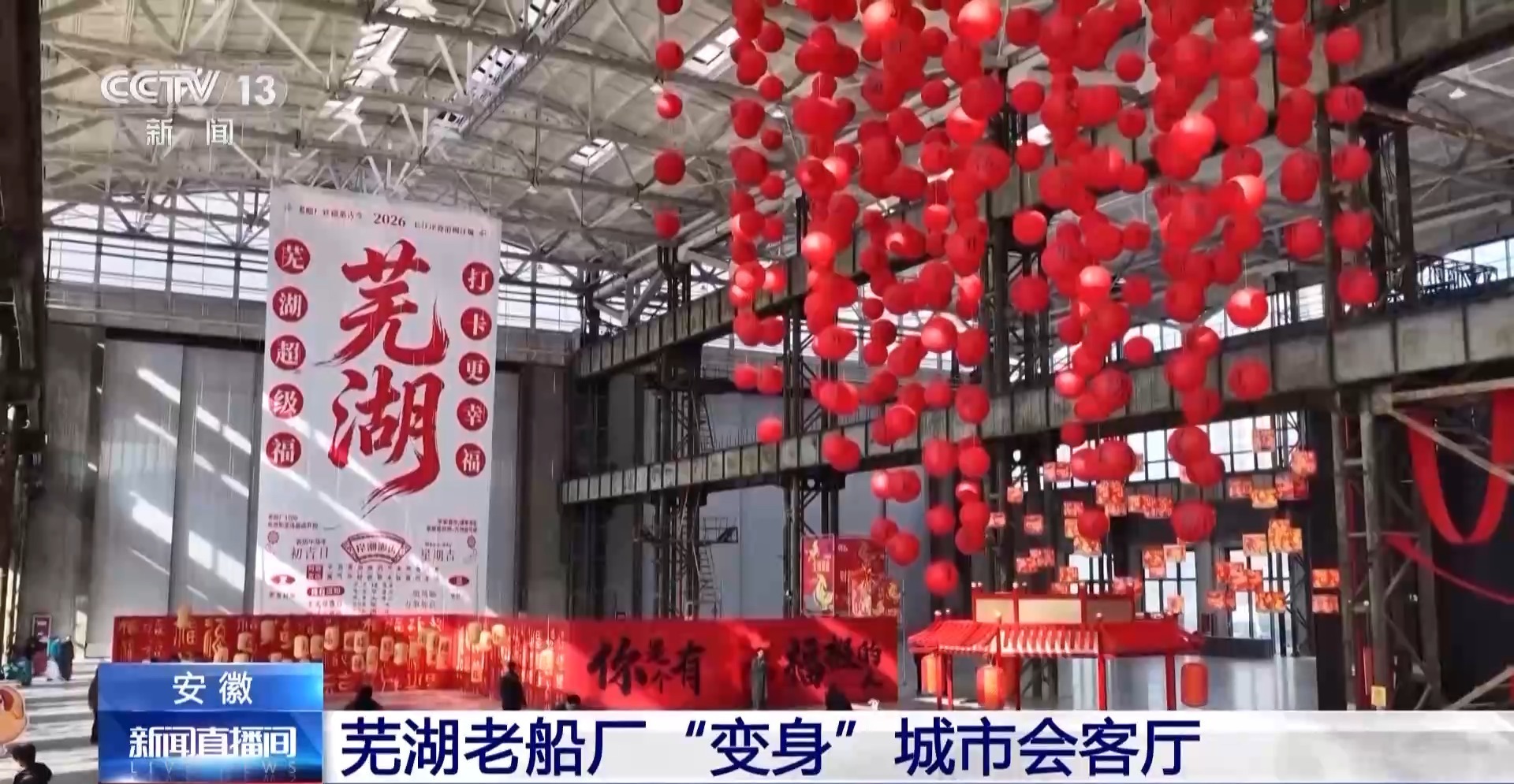 芜湖市镜湖区文化旅游体育局副局长 储晖:2025年,我们策划了芜湖首届光影艺术节、咖啡节、民俗大巡游等77场活动,吸引超过33万人次。2026年我们将继续举办丰富多彩的文化艺术活动,将老船厂全力打造为芜湖首秀、首演、首展的聚集地,让老船厂成为芜湖的文化新地标。