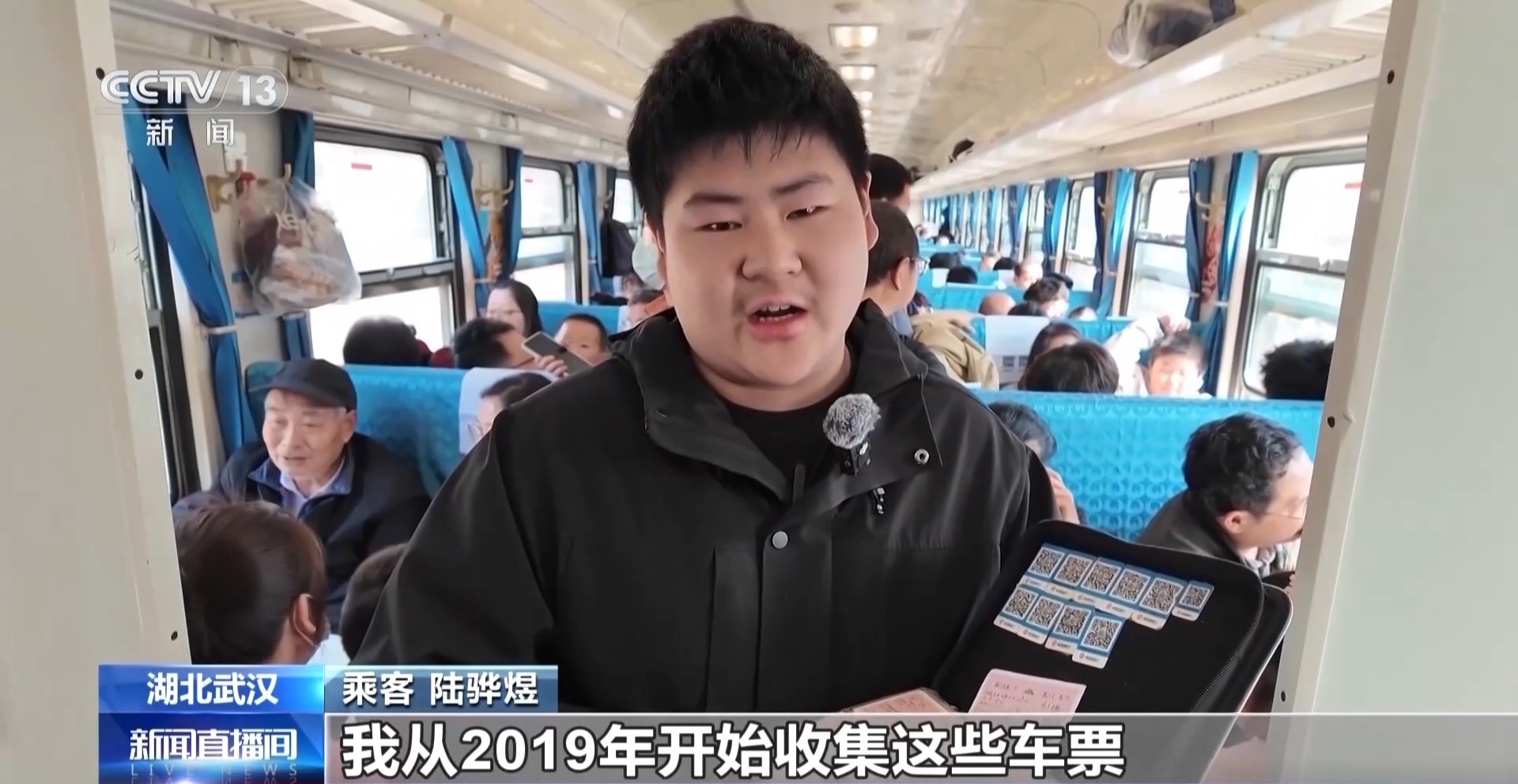 乘客 陆骅煜:我是一个铁路爱好者,我从2019年开始收集这些车票,到现在这里面应该有个两三百张了,今天来坐这个车,有种怀旧的感觉。