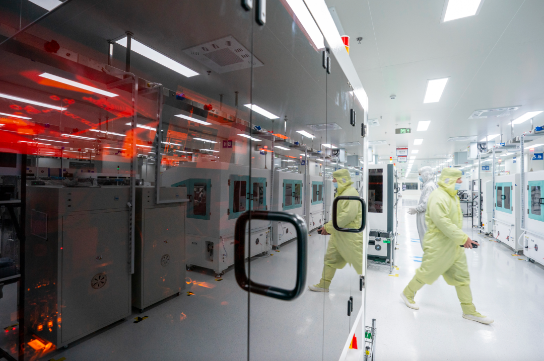 华工科技光电子信息产业研创园暨出口基地(一期),超高速光模块生产线在满负荷生产800G光模块(魏铼 | 摄)