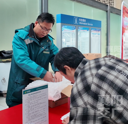 3月13日下午,在襄阳站进站口,仍不时有旅客在安检区旁的“务工工具免费寄递专窗”办理业务。“有了这项服务,再也不用担心吃饭的‘家伙’带不上火车了,关键还是免费!”准备前往深圳务工的张先生,这样告诉记者。