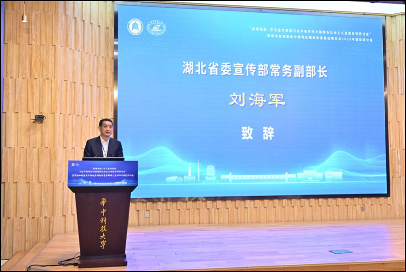 3月15日,“真理领航·学习宣传贯彻习近平新时代中国特色社会主义思想系列研讨会”暨湖北加快建成中部地区崛起的重要战略支点2026年理论研讨会在华中科技大学举行。来自中国宏观经济研究院、中国人民大学、武汉大学等高校和科研单位的专家学者齐聚一堂,围绕如何将湖北的科教优势转化为产业胜势、重塑区域发展新格局展开深入研讨,为湖北高质量发展贡献“硬核”智力支持。华中科技大学党委书记刘波、湖北省委宣传部常务副部长刘海军出席会议并致辞,湖北省社科联主席赵凌云教授出席会议并作主旨发言;省社科联党组书记、常务副主席刘爱国出席会议。