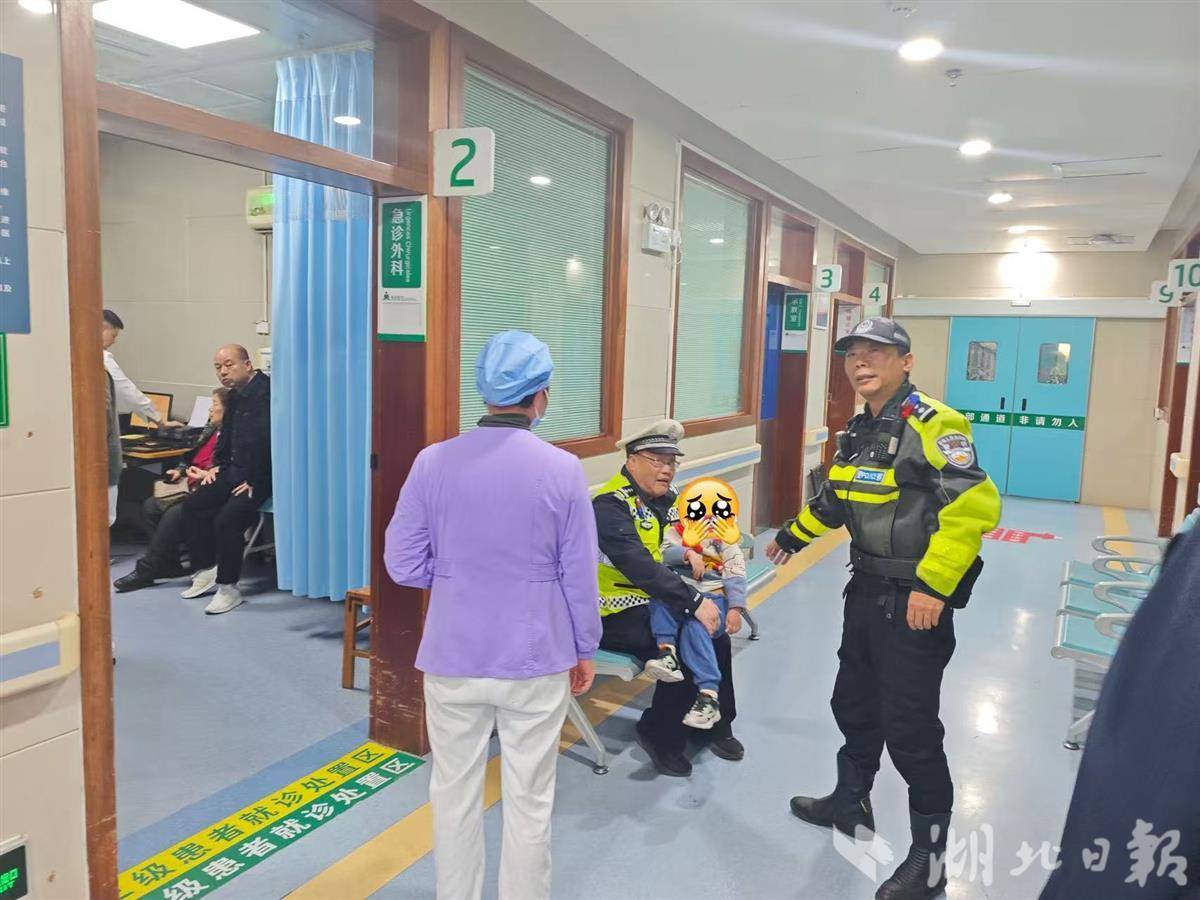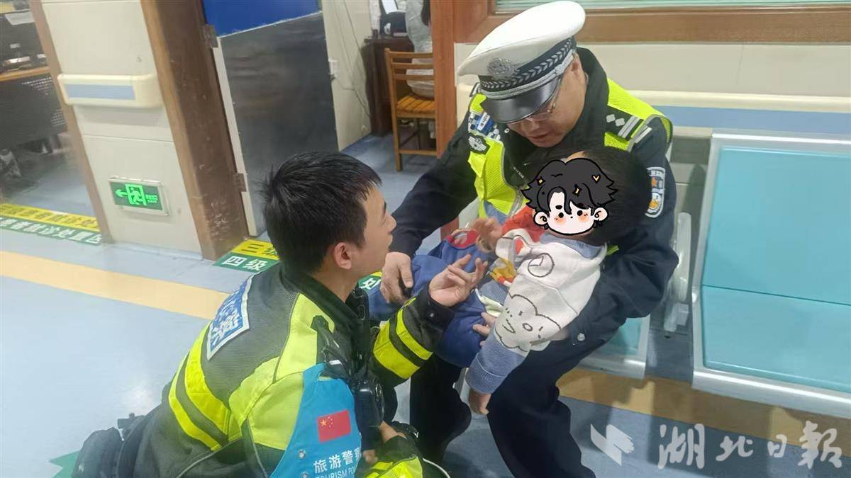 3月14日下午2时许,东湖交警一中队中队长杨帆、民警郭建波正在渔光小路疏导交通,一名中年男子怀抱哭闹不止的儿童焦急跑来求助——孩子不慎摔跤导致胳膊骨折,急需送医。此时景区周边道路车流密集,打车困难,家长心急如焚。