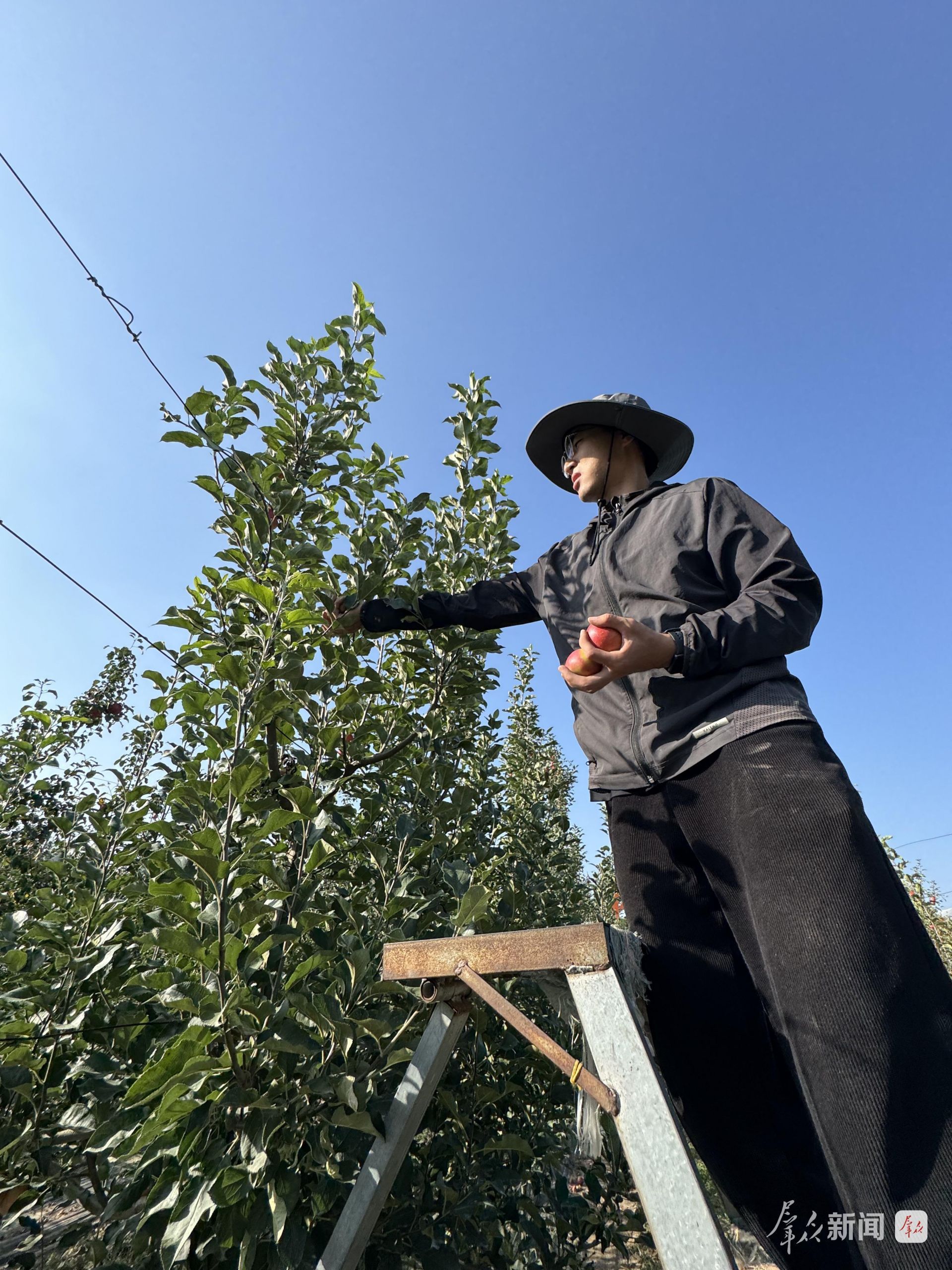 张新杰在采摘苹果。