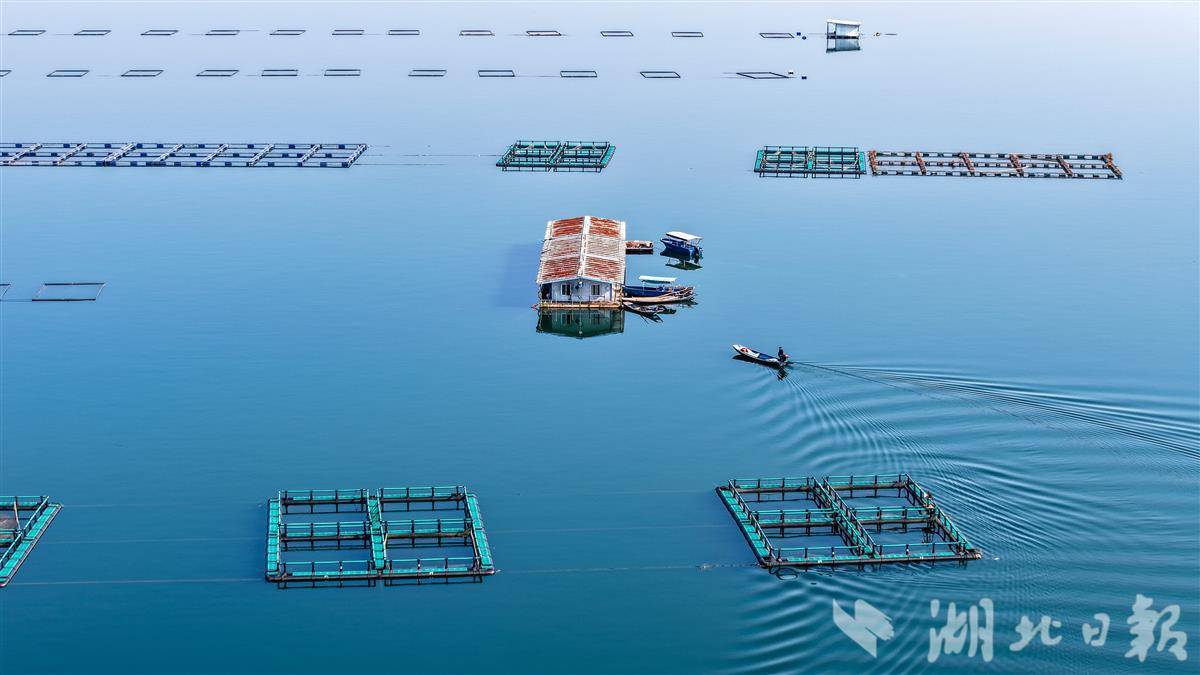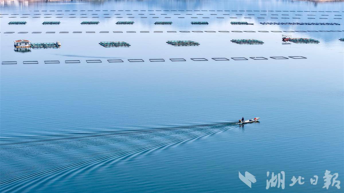 3月14日,黄冈市白莲河水库,农户正巡护生态养殖网箱。近年来,白莲河示范区践行 “绿水青山就是金山银山” 理念,依托优质水资源发展生态渔业,通过标准化网箱养殖、生态放养等模式,既守护了一库清水,又带动农户增收,绘就了一幅生态美、产业兴、百姓富的水乡振兴画卷。(视界网 王江 摄)