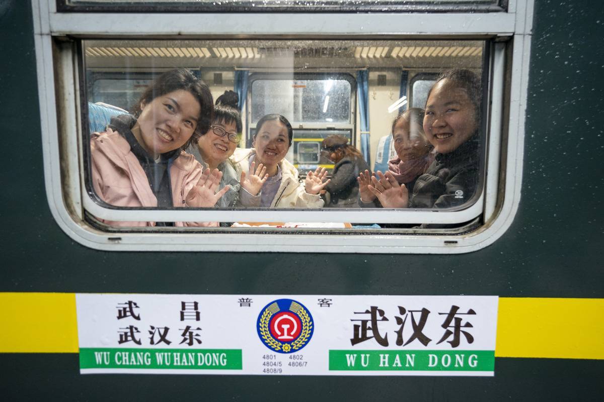 来自福建的林女士和两位闺蜜相约武汉赏花,不巧刚到武汉就遇到下雨天。几人正愁去哪游玩,刚好刷到武汉铁路环线开通的消息,立马买票登车。一路上,天兴洲的油菜花海、汉口的闹市、长江大桥、黄鹤楼等景点、景观,让她们和其他旅客的手机拍不停。“以前小时候坐过这种绿皮车,现在再来坐感觉好亲切。现在的高铁虽然坐着很舒服,但是速度太快了,想仔细看看窗外的风景都不行……”林女士的话还没说完,旁边的闺蜜笑着抢话道:“这趟车可以让我们慢慢地看风景。”