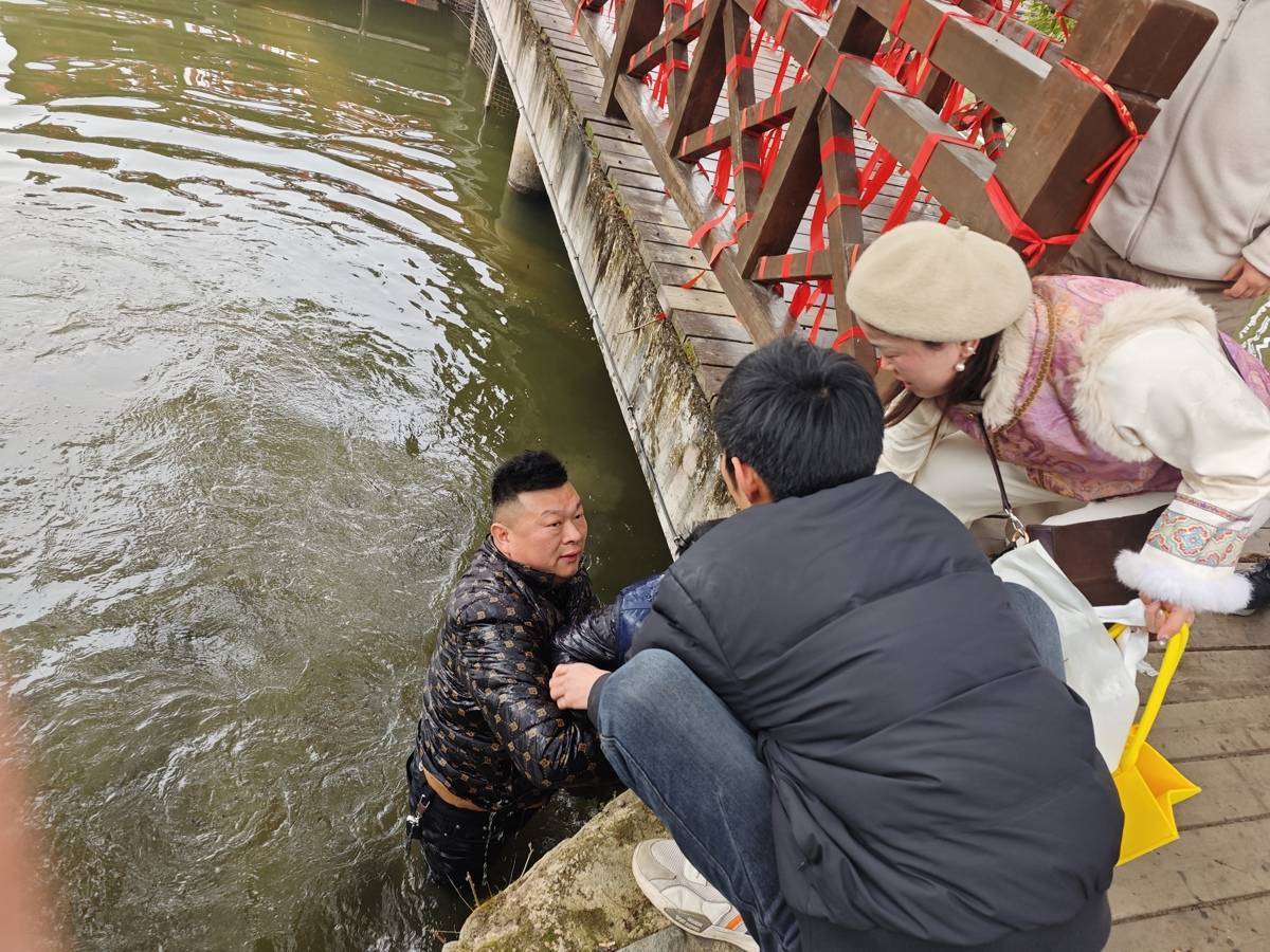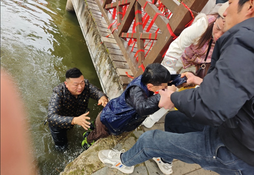 3月8日下午,在武汉市黄陂区大余湾景区内,一声急促的“有人落水了!”打破了景区的宁静。正在陪伴家人游玩的陈江听到呼救,没有丝毫犹豫,拨开人群冲向岸边。此时,水中的男童正在拼命挣扎,情况危急。