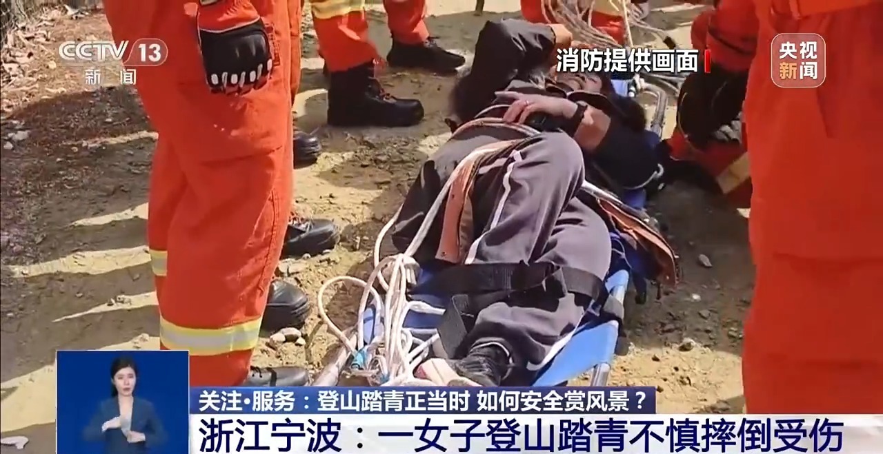 3月7日,浙江宁波也发生类似险情。一名登山踏青的女子不慎摔倒受伤被困。消防救援人员抵达现场后发现,被困女子左腿大腿部位受伤,因剧痛无法自主活动。消防员先轻轻将被困女子扶起,平稳转移至担架上。
